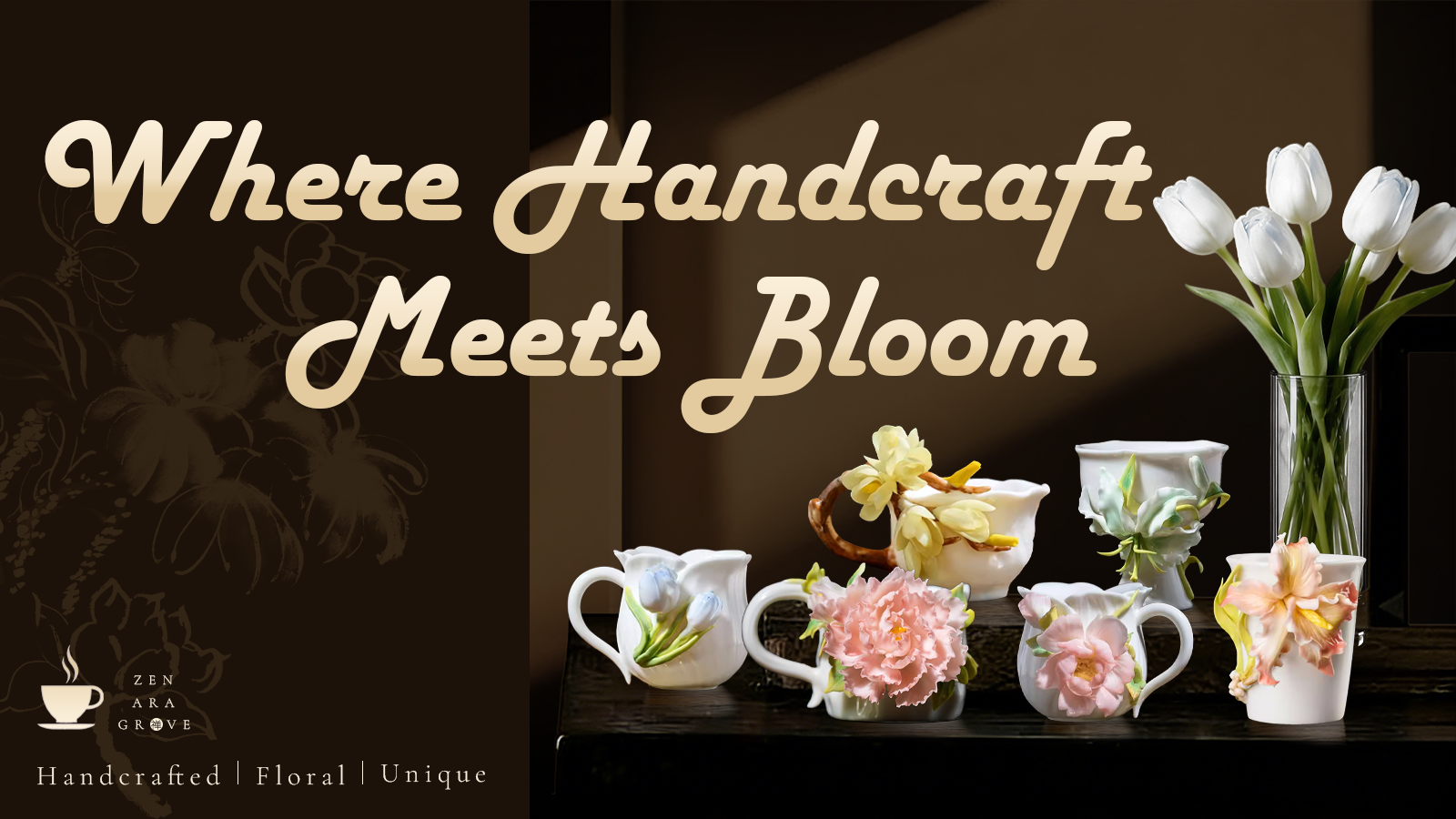 Limited Time Offer · Handcrafted Heritage Porcelain Cup – Tulip Blossoms Growing from the Surface | Zen Ara Grove