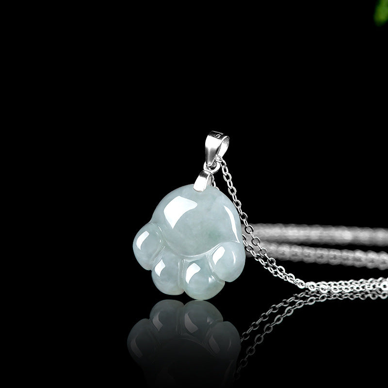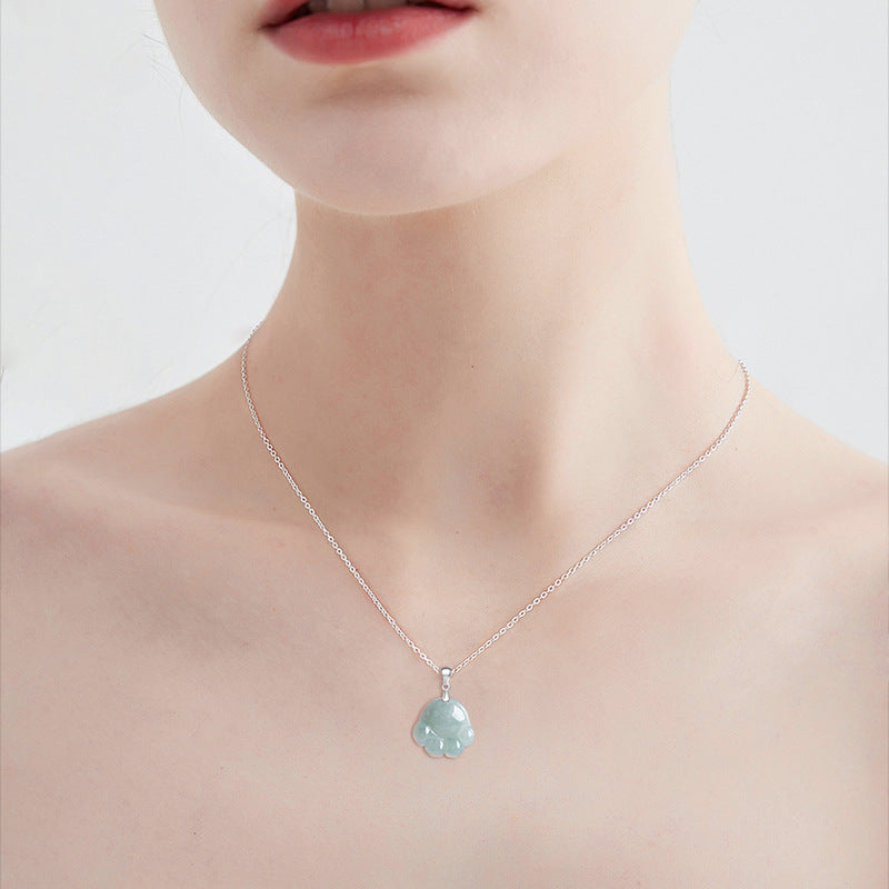 925 Sterling Silver Hetian White Jade Cute Cat Paw Luck Necklace Pendant | Zen Ara Grove
