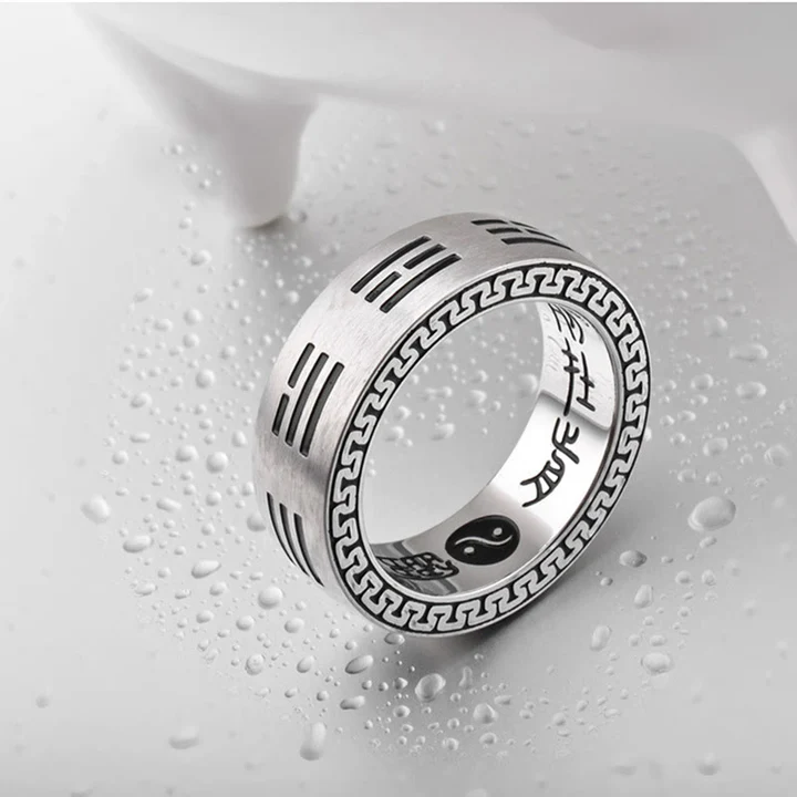 Crafted from durable titanium steel, this ring combines the Taiji Yin Yang symbol with intricate ancient Chinese script. The black-and-white contrast embodies the eternal balance between opposing forces, while the engraved script channels wisdom from centuries past. Ideal for daily wear, spiritual practice, or as a meaningful gift for someone seeking inner harmony.