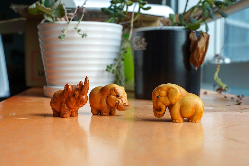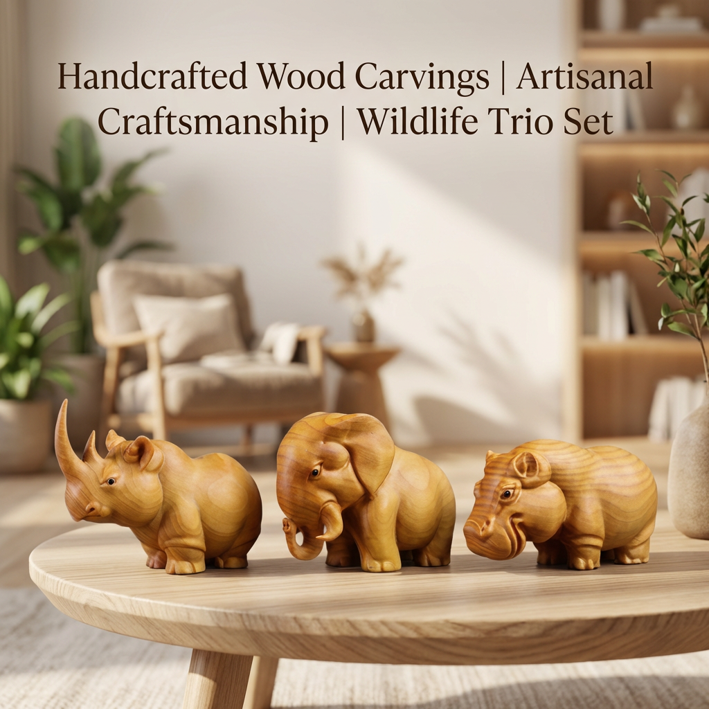Aromatic Cypress Wildlife Carving Collection – Rhino, Elephant, Hippo Desk Decor | Zen Ara Grove