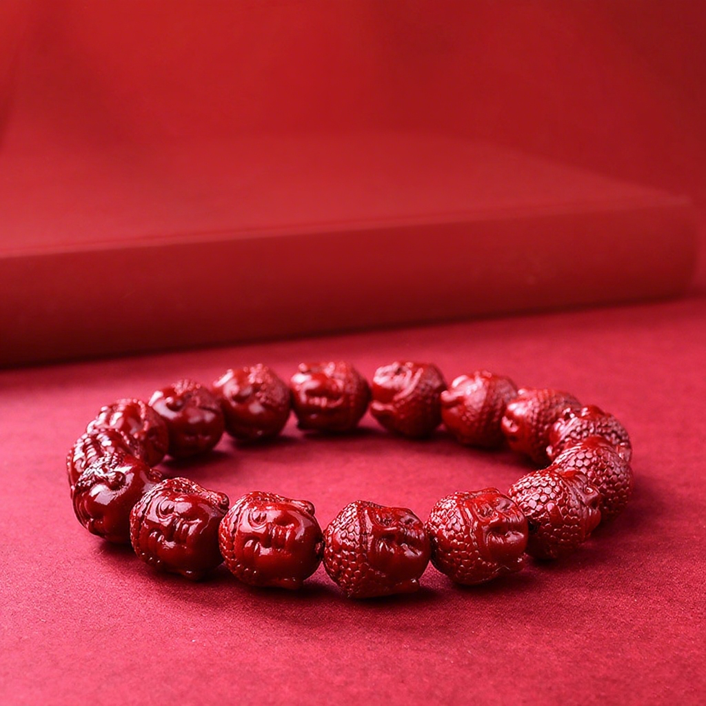 Cinnabar Buddha Head Prayer Bead Bracelet
