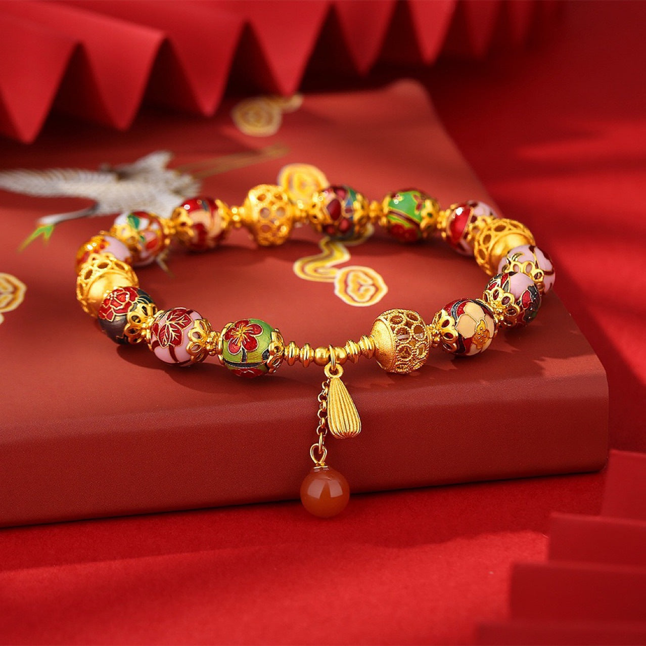 Cloisonné & South Red Agate Enamel Bracelet | Zen Ara Grove