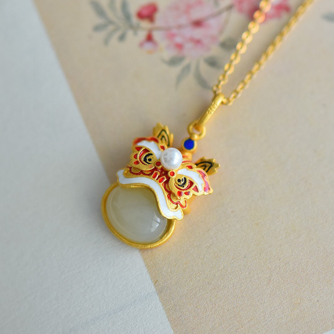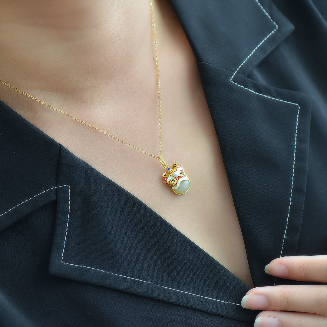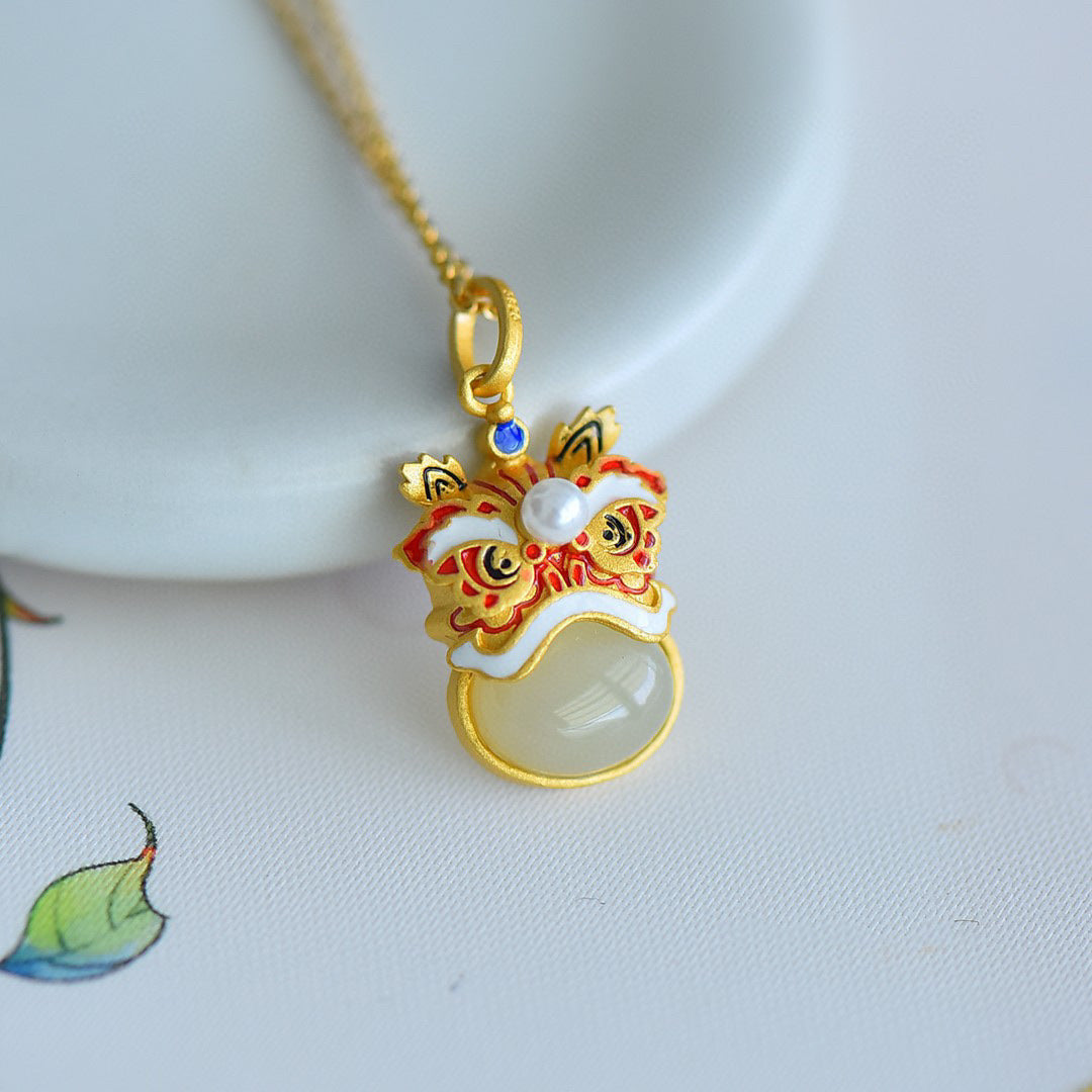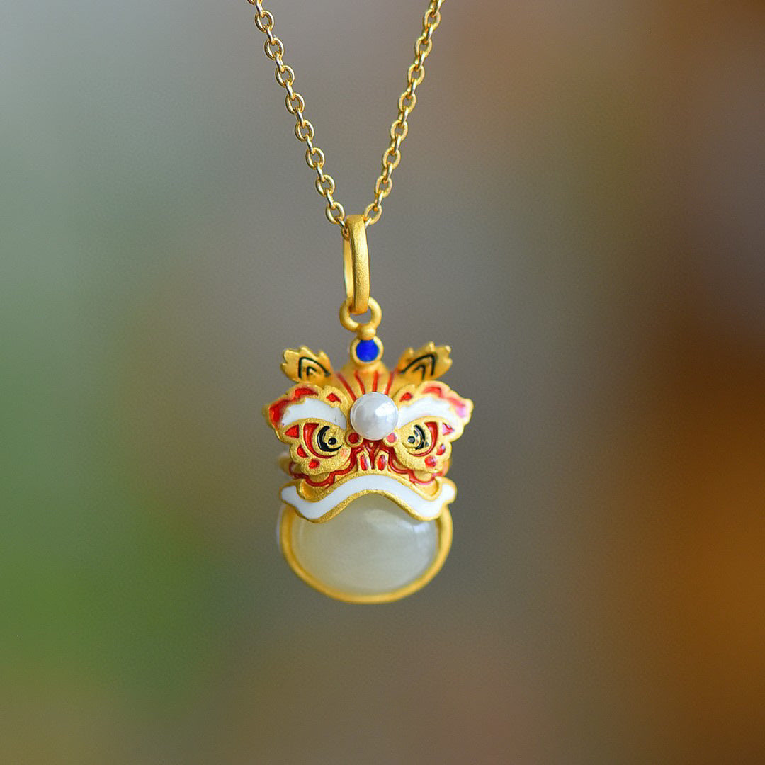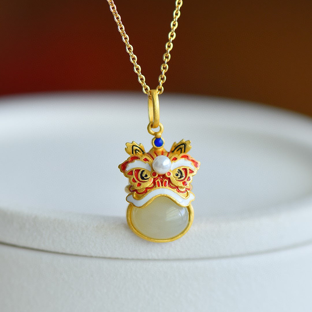 The Cloisonné Guardian Lion Pendant is inspired by the traditional Chinese Lion Dance, symbolizing valor, protection, and prosperity.