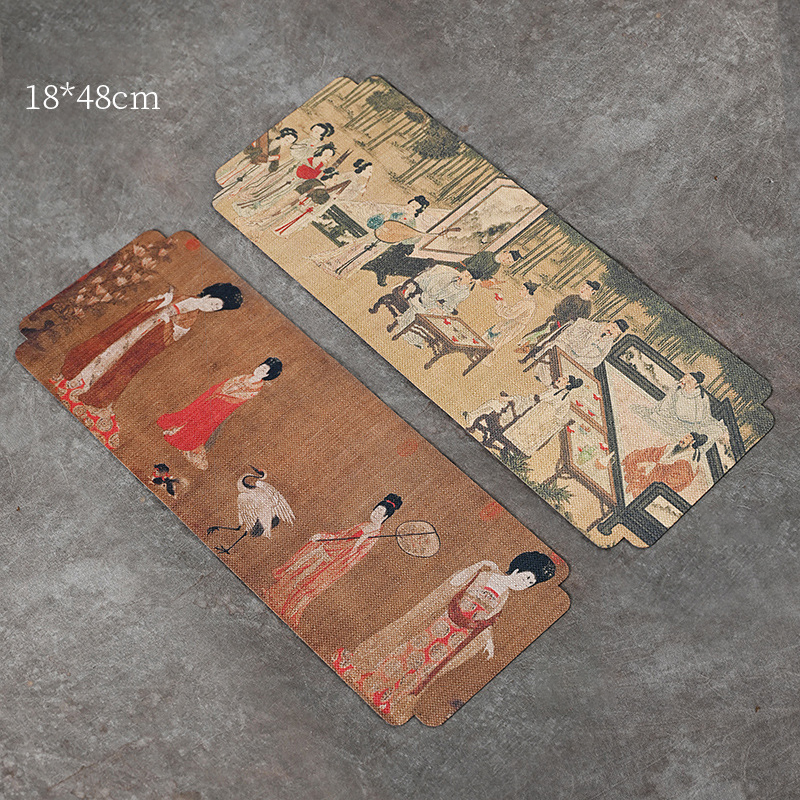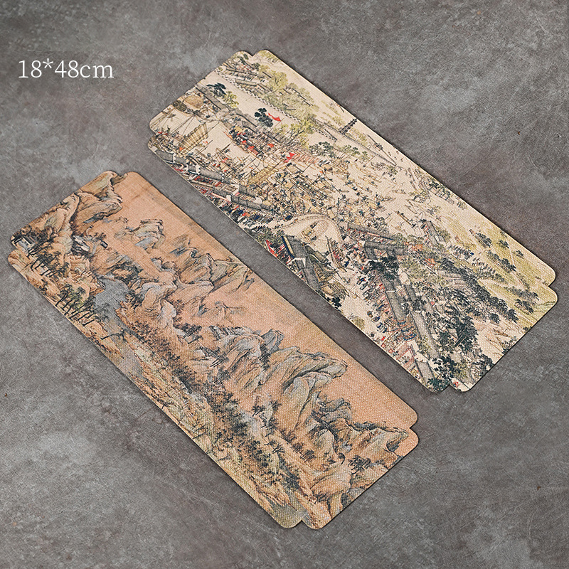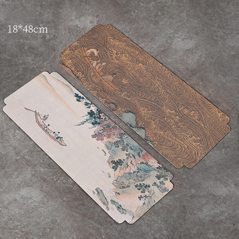 Light cyan linen base with ink-wash landscapes, featuring a scholar boating amidst mist-embroidered peaks. Ultra-fine 0.3mm stitches render cloud textures, with reed-weave details on the hat