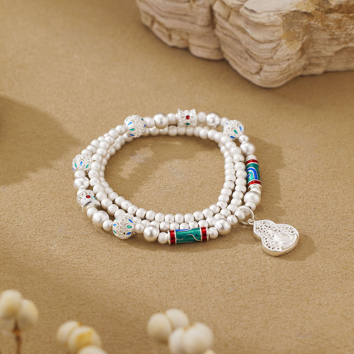 Rooted in ancient Eastern symbolism, this bracelet features a hollow gourd charm crafted with traditional enamel, paired with soft white beads and classic hand-stringing.