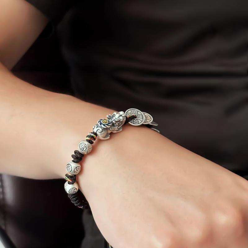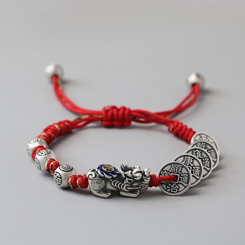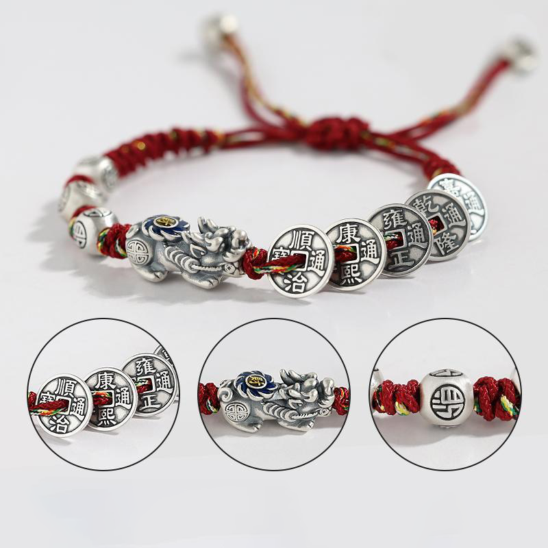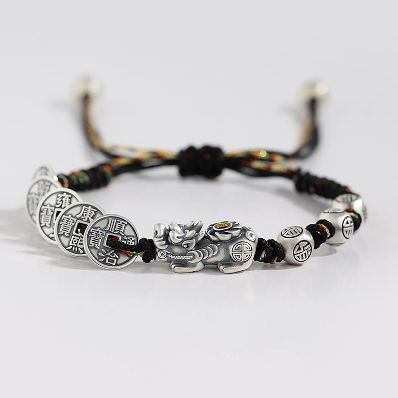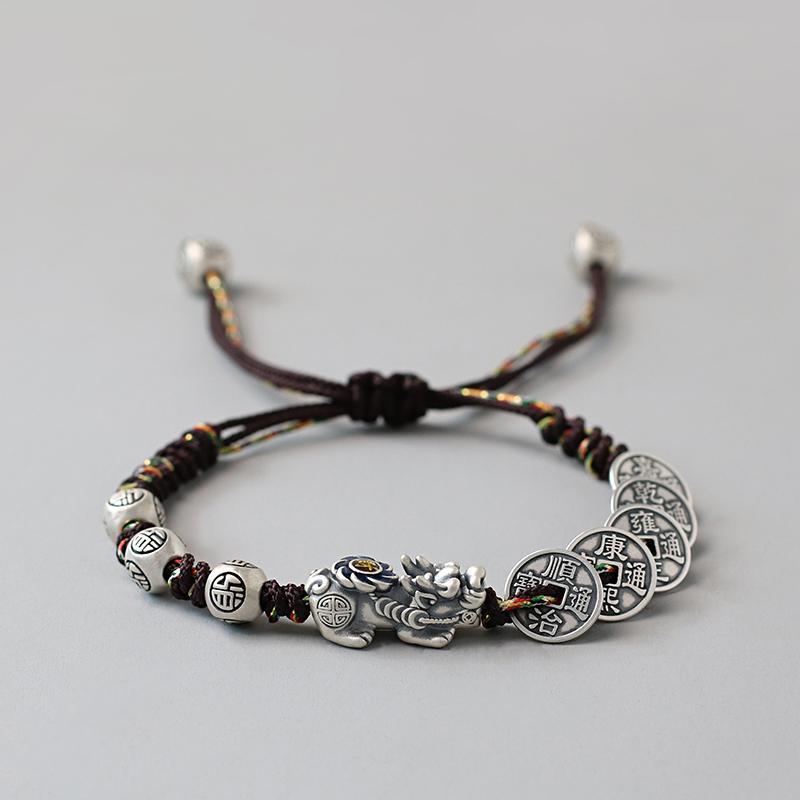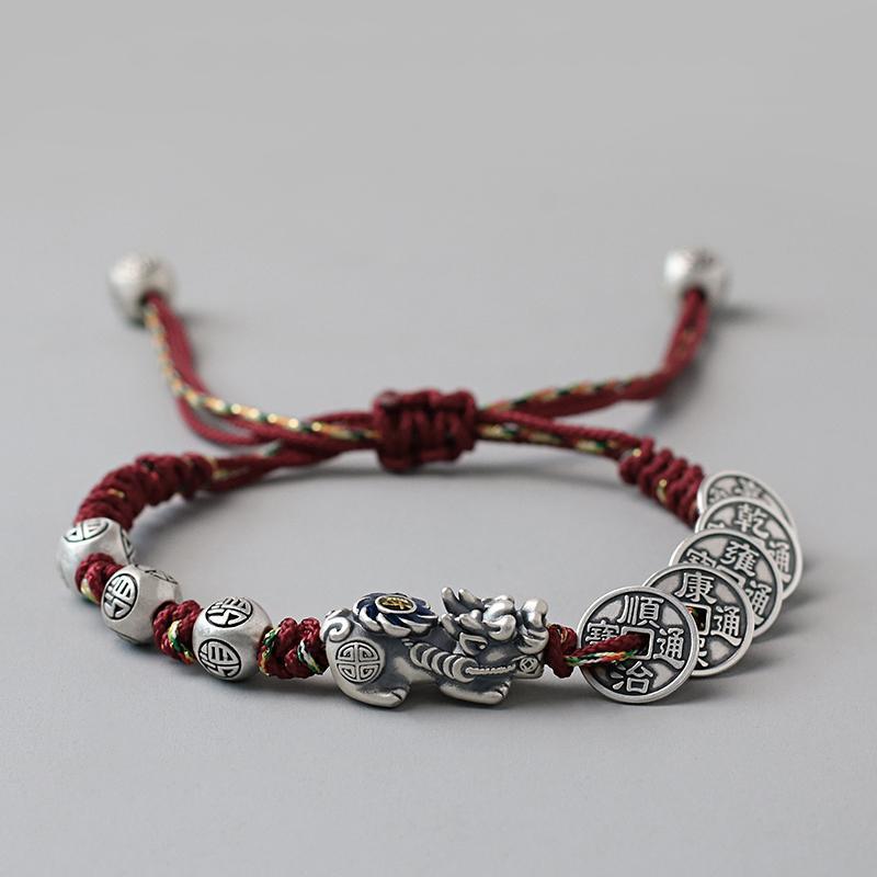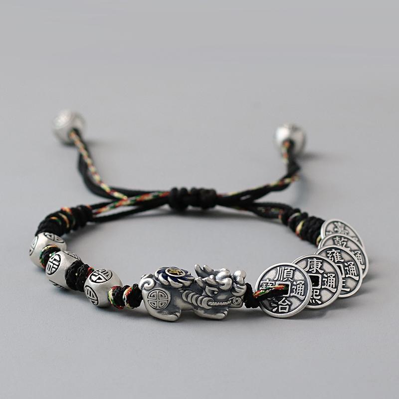 Fortune Pixiu with Five Emperor Coins Braided Bracelet | Zen Ara Grove