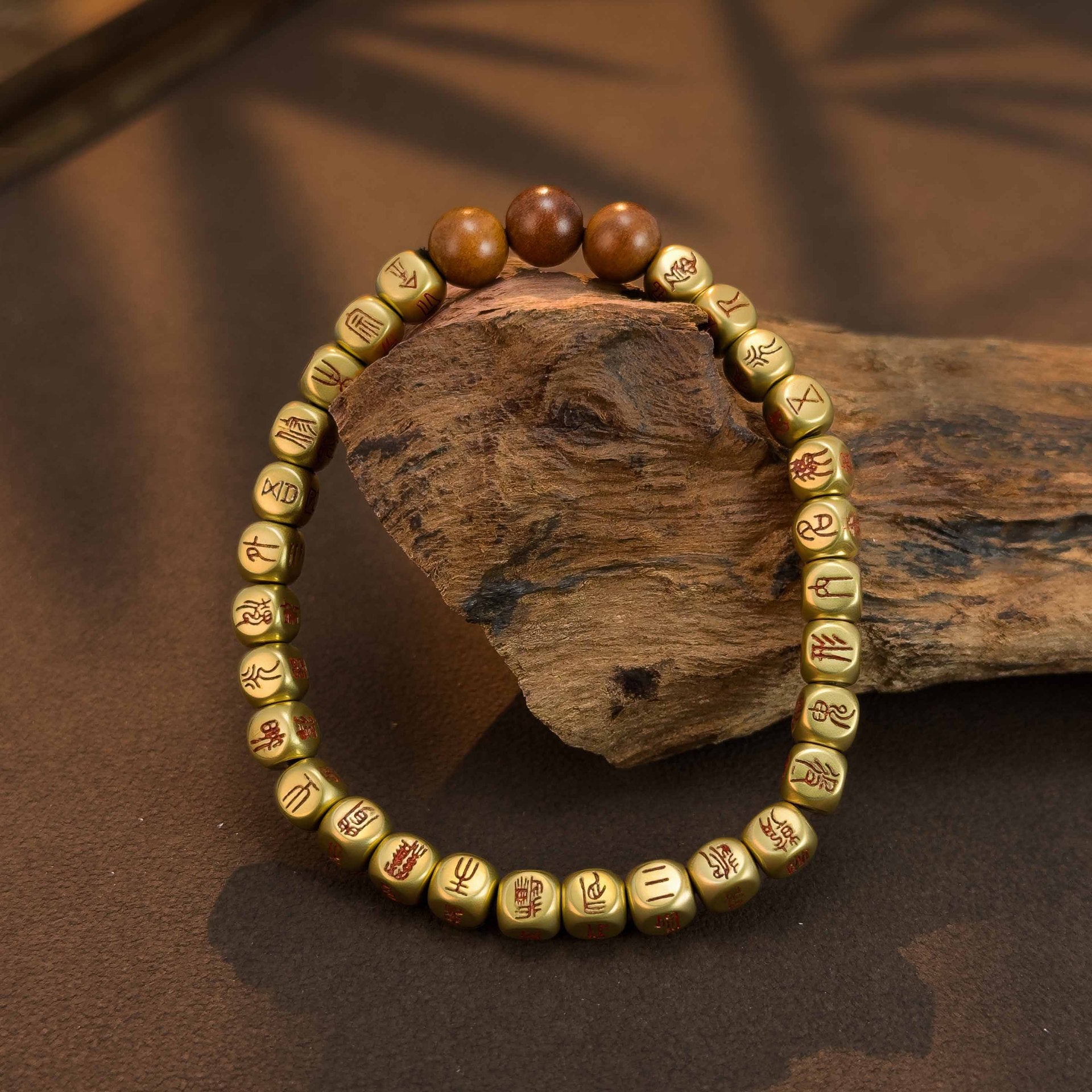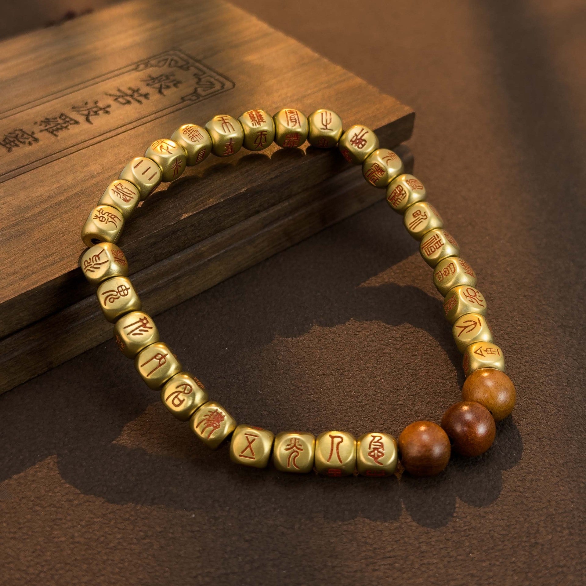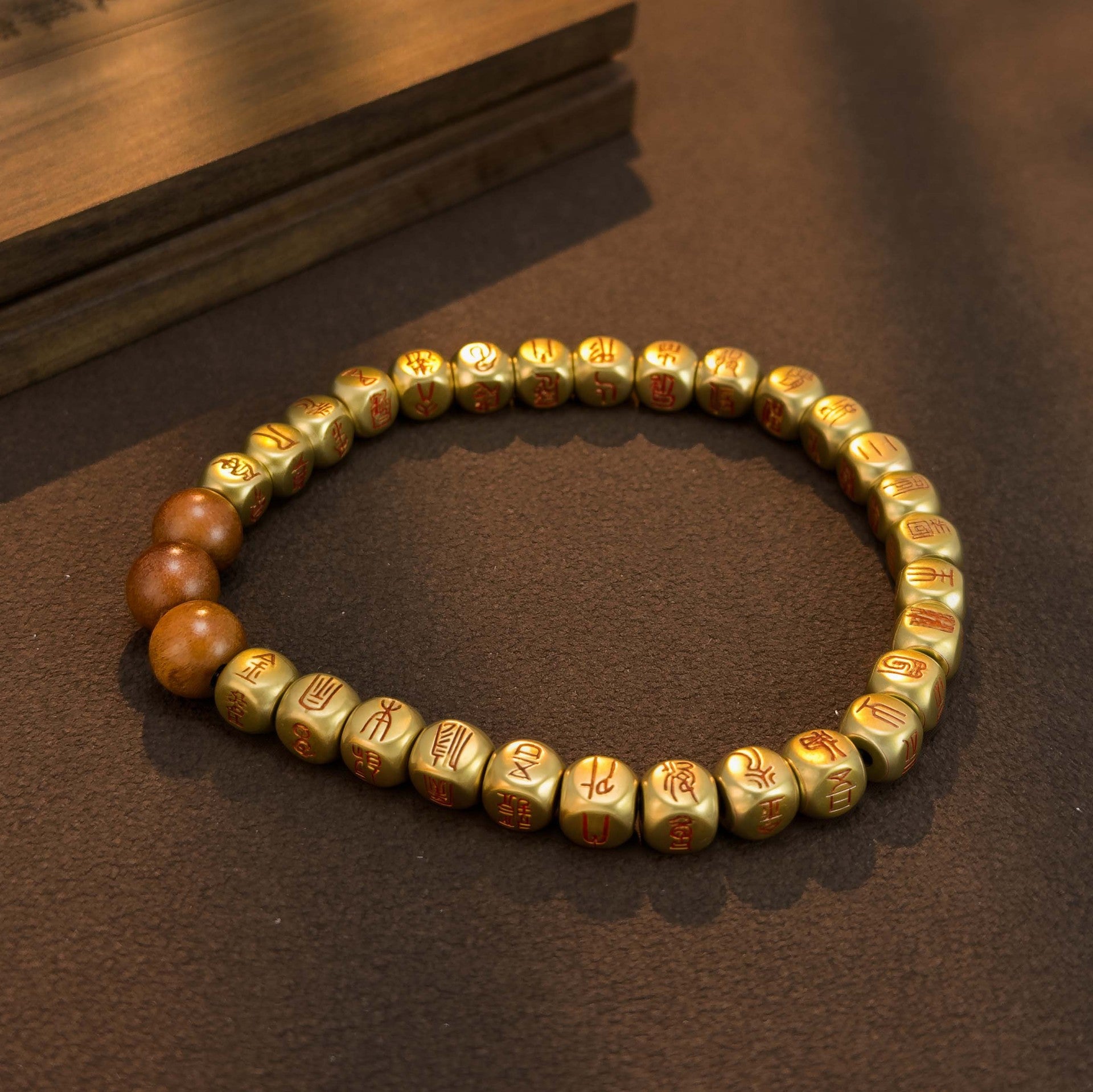 Golden Light Mantra Bracelet – Daoist Red Cinnabar Script Beads | Zen Ara Grove