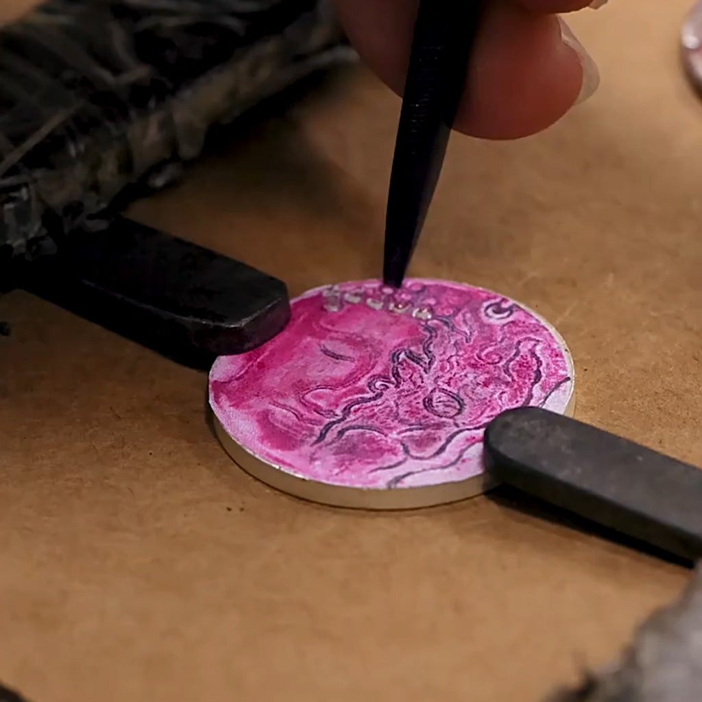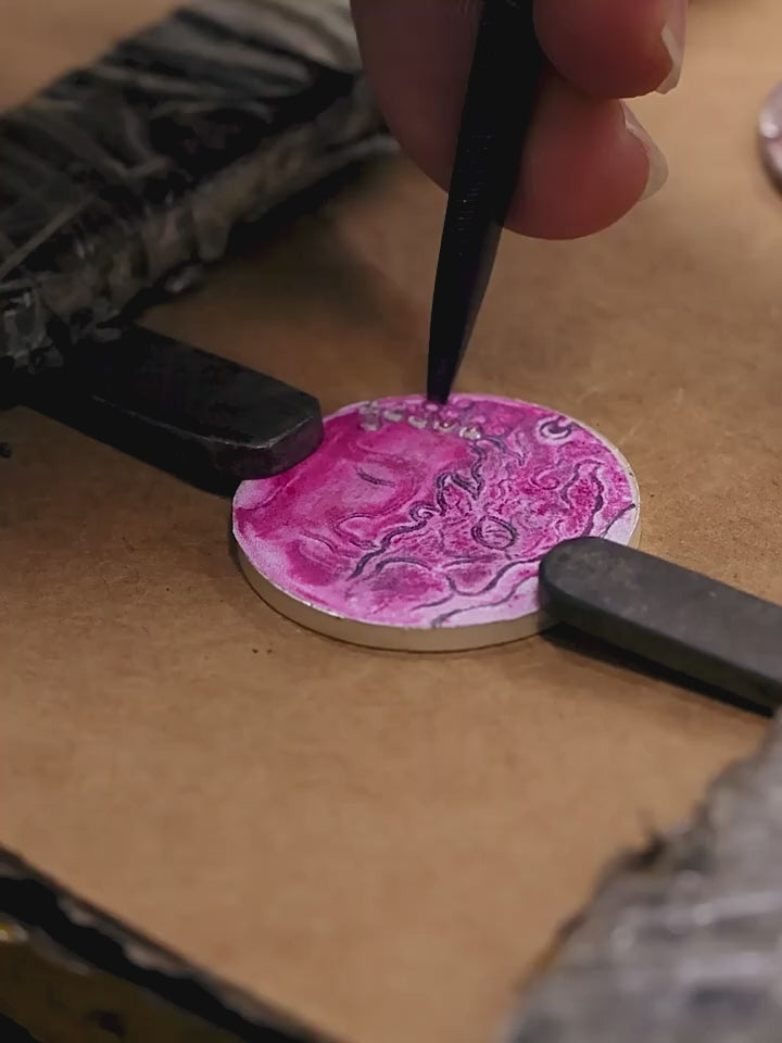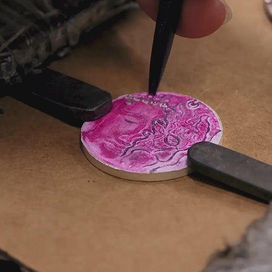 The round medallion form features retro finishing and fine symbolic engraving, each detail hand-polished for depth and balance. The back of the pendant can be custom engraved to create your own personal message or meaningful date, making each piece truly one-of-a-kind.