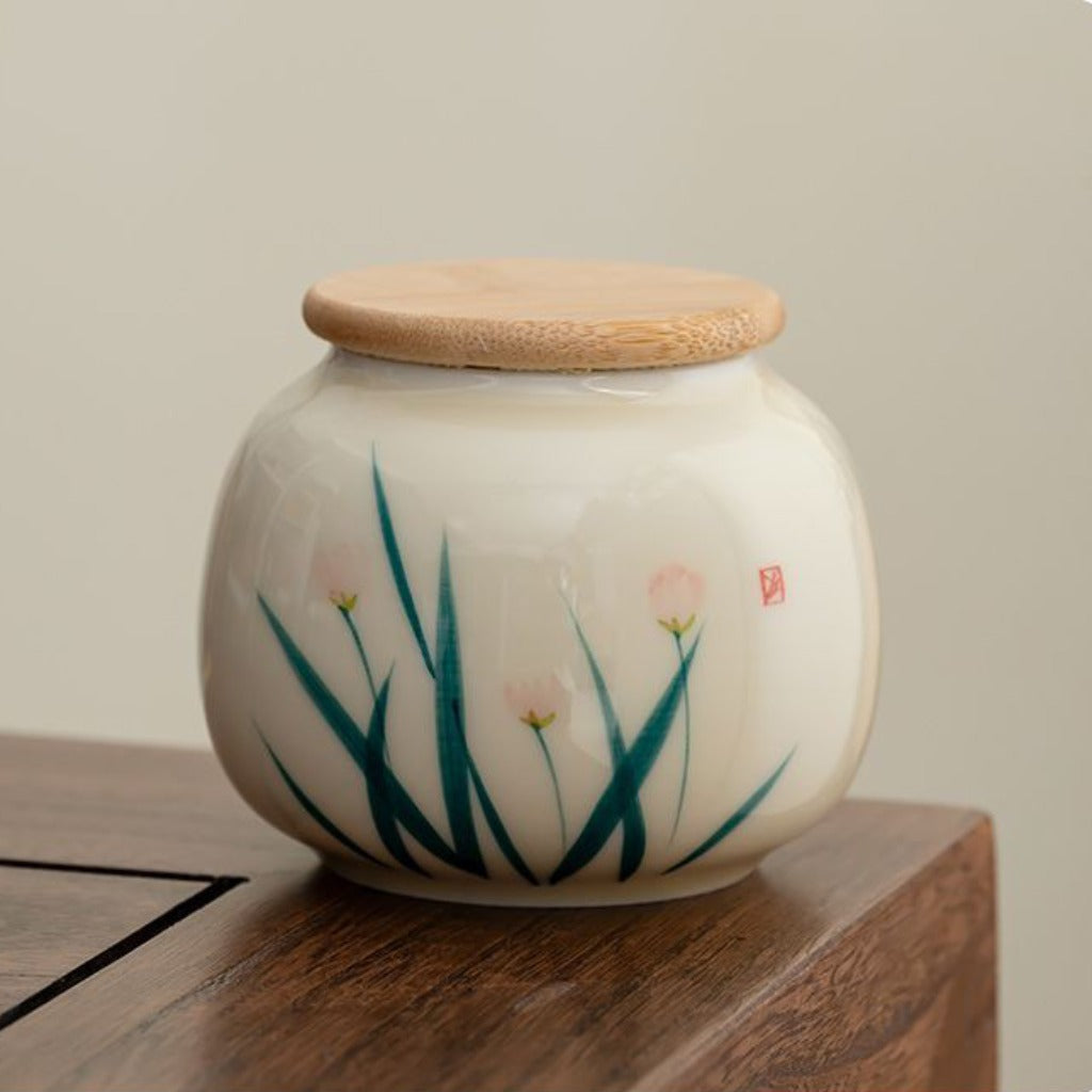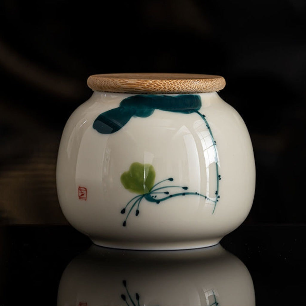 Hand-painted Ceramic Tea Canister – Airtight Storage for Loose Leaf Tea | Zen Ara Grove