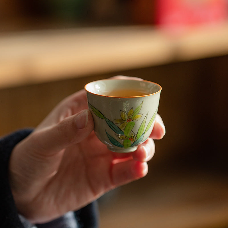 Hand-Painted Orchid Ceramic Tea Cup | Zen Ara Grove