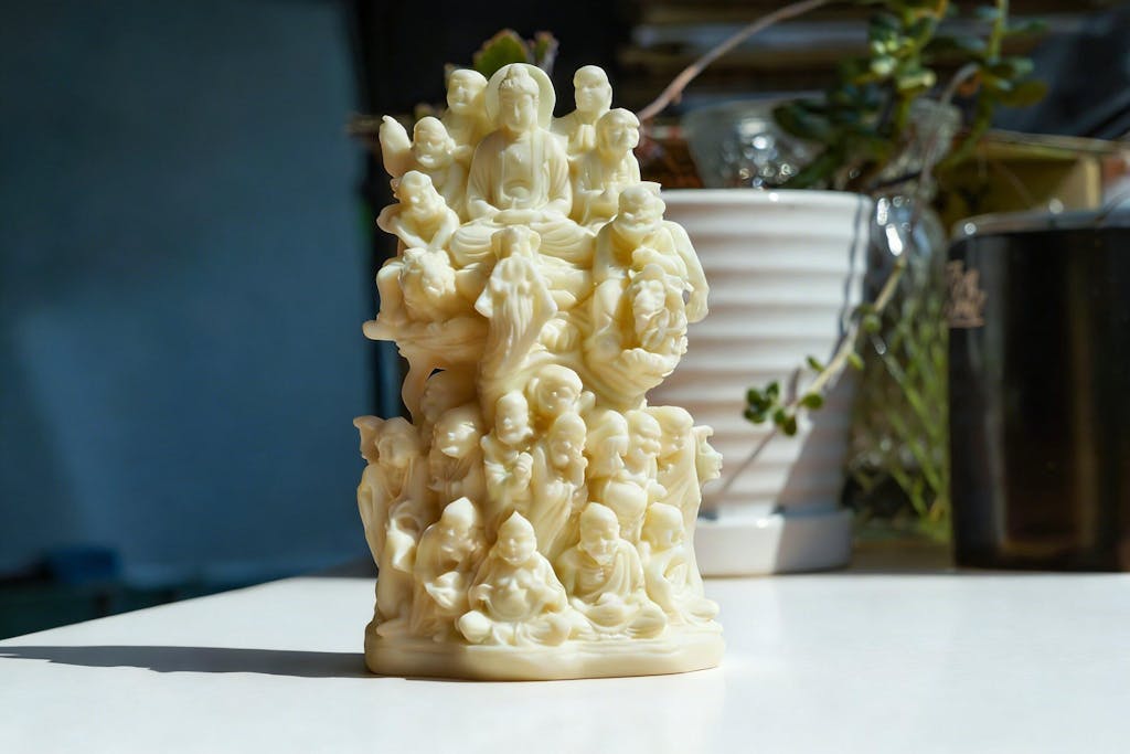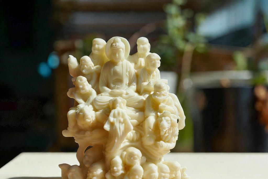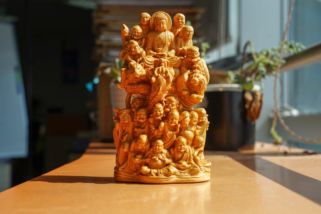 Available in fine woods including Japanese Boxwood (Buxus microphylla), Boxwood,Cypress, and Tagua Nut (Ivory Palm), each material offers its own color tone, grain, and feel. Master artisans carve each piece with attention to detail, making every statue unique.