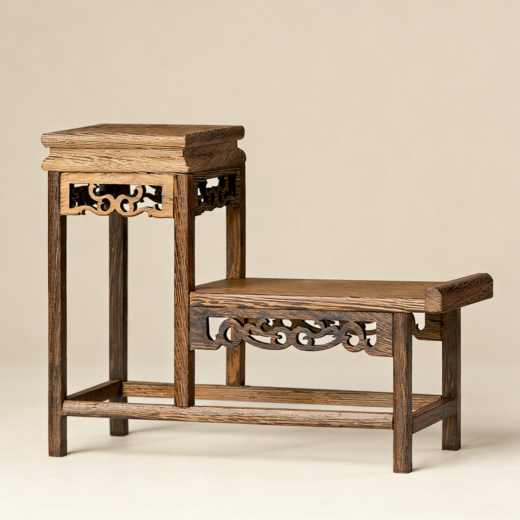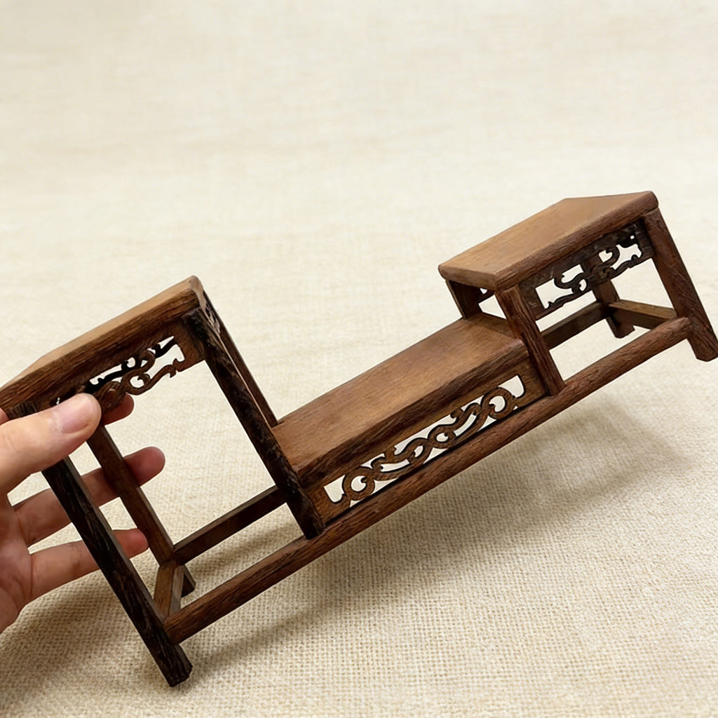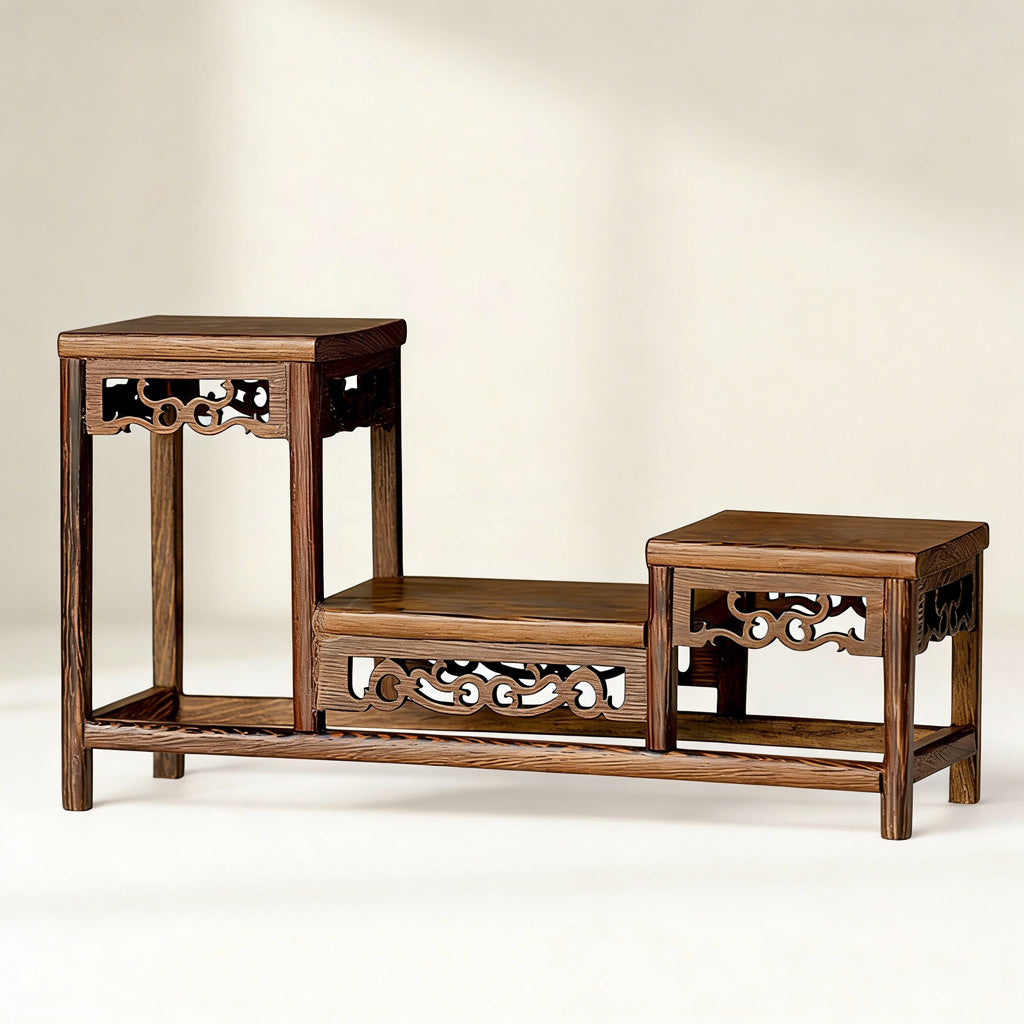 Handcrafted Macassar Ebony Tiered Display Stand – Elegant Heritage for Tea Sets, Bonsai & Collectibles | Zen Ara Grove