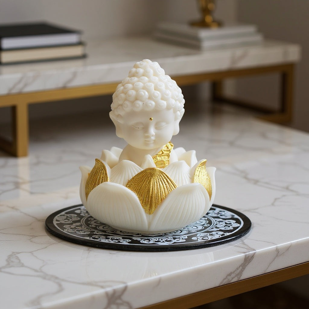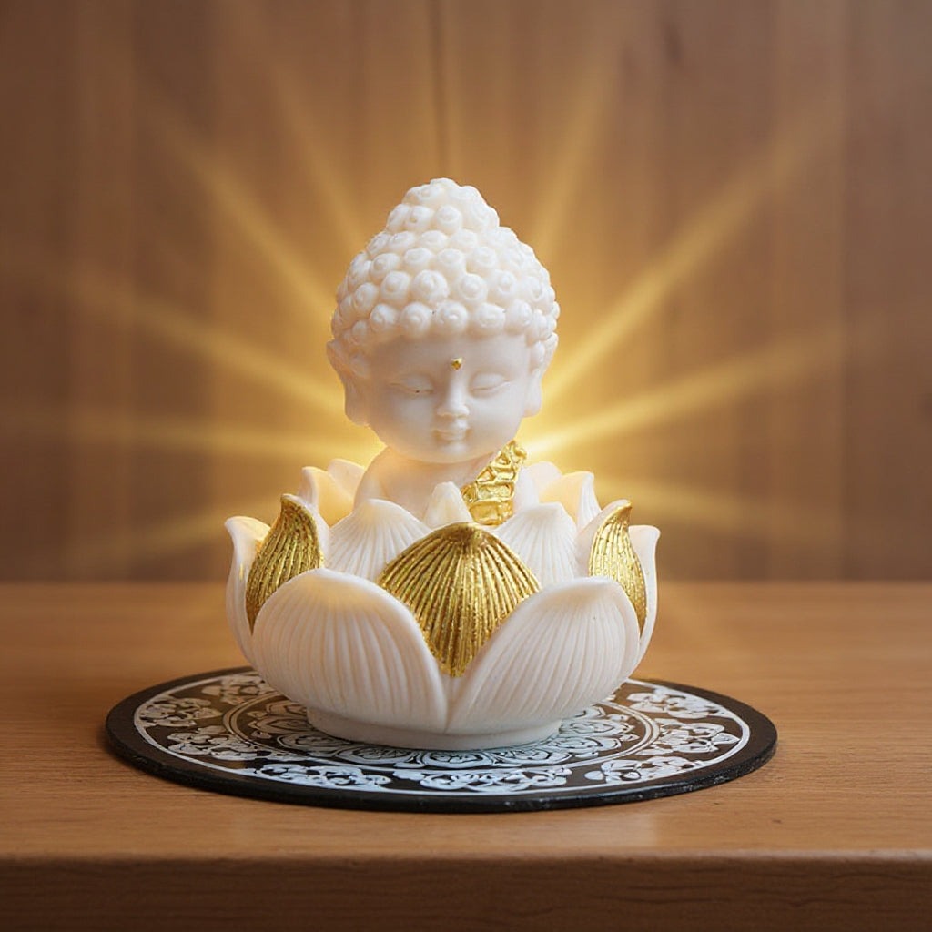 Handmade Golden Lotus Buddha Figurine – Symbol of Serenity, Wisdom & Inner Peace | Zen Ara Grove