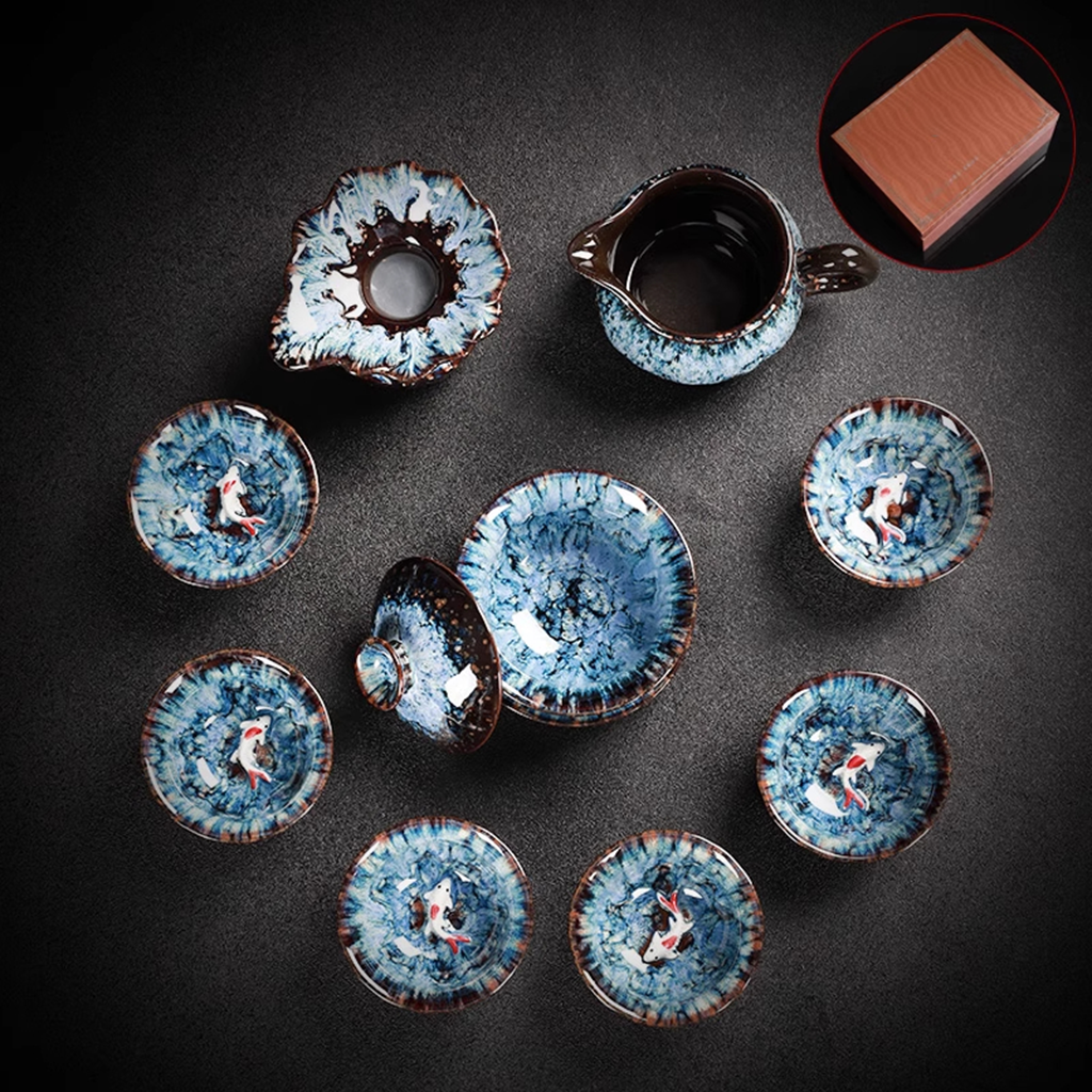 Celebrate the beauty of craftsmanship with our Kiln-Change Glaze Porcelain Teacup – “Year of Plenty” Lucky Fish Edition.