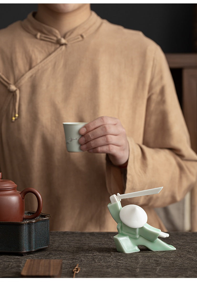 Kung Fu Zen Ceramic Incense Holder – Martial Artist Duel Figurine | Zen Ara Grove
