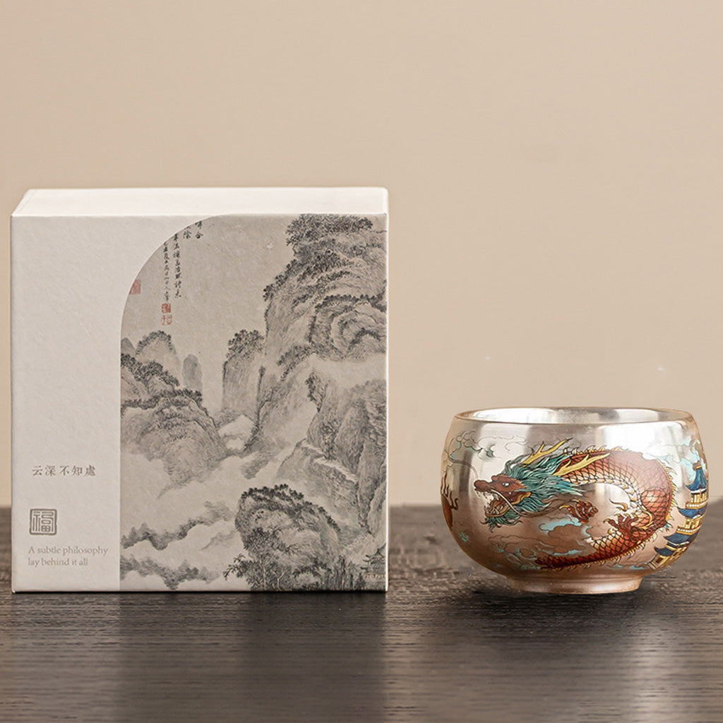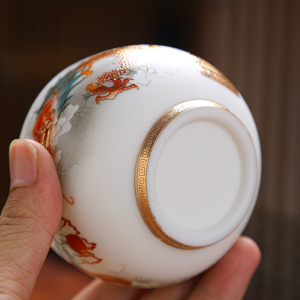 This Ivory-Glaze Porcelain Cup combines the luxurious softness of jade-like porcelain with the artistry of the dragon and phoenix motif. The dragon reflects strength and guardianship, while the phoenix symbolizes elegance and renewal—together they create a harmonious visual balance suitable for any refined setting.