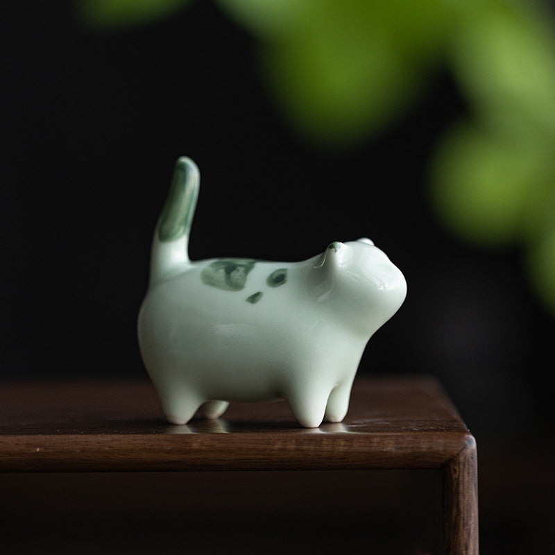 Mini Lucky Cute Spotted Standing Cat Sleeping Kitten Ceramic Figurine Decoration
