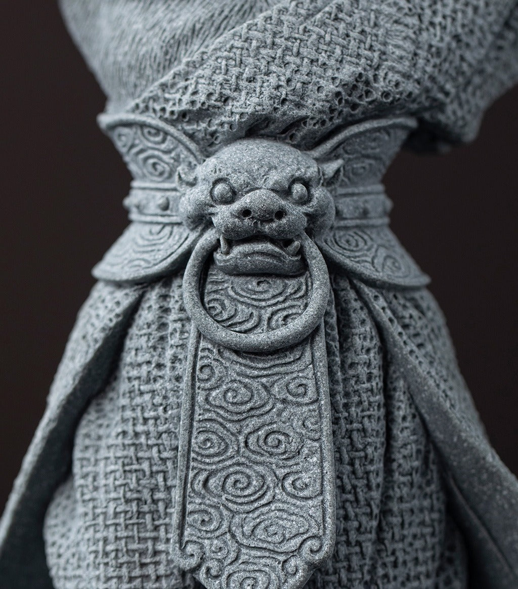 The design draws inspiration from epic tales told across generations, representing courage, rebellion against injustice, and the spirit of adventure. Each sculpture is hand‑finished to highlight the natural texture and shade variations of the sandstone, ensuring a unique visual character for every piece.