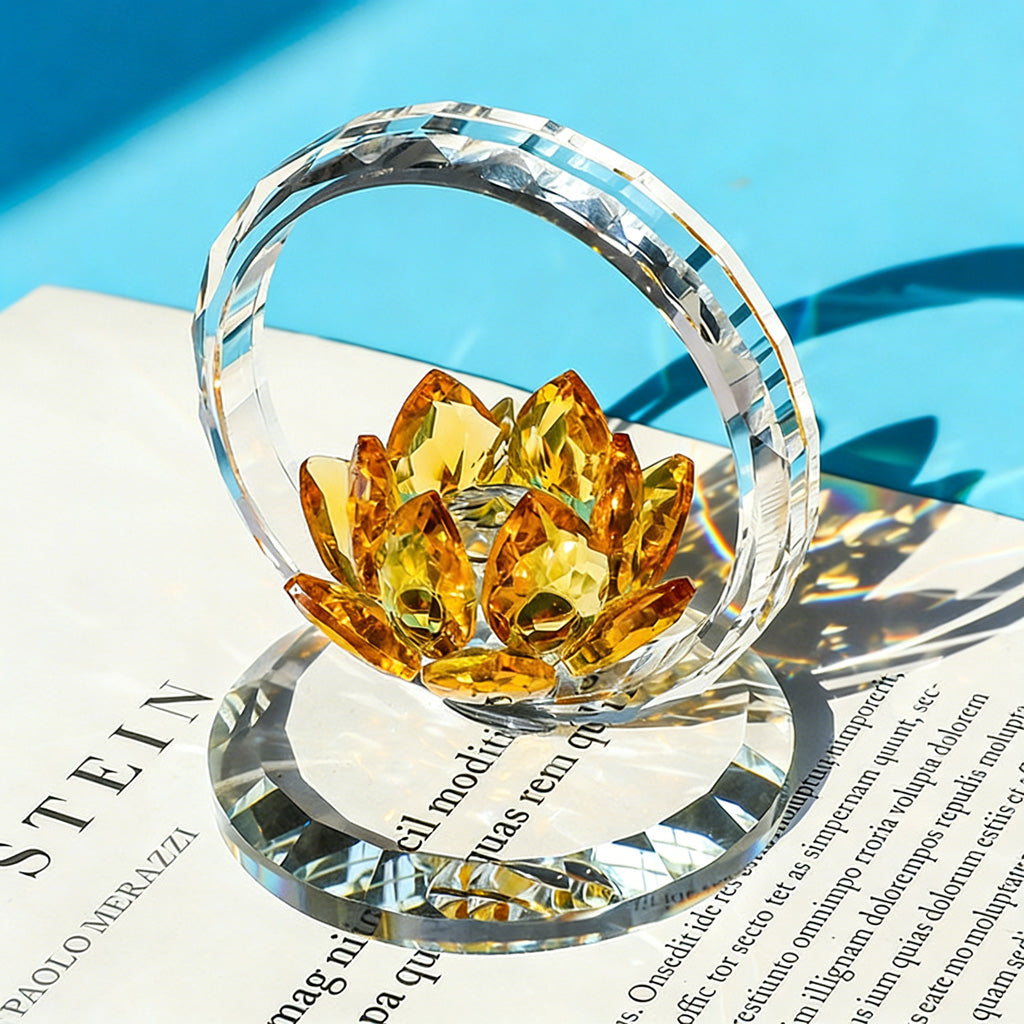 The Colorful Crystal Glass Lotus Ornament combines timeless symbolism with radiant craftsmanship. The lotus flower, revered across cultures, represents purity, hope, and spiritual awakening. Crafted from high-quality crystal glass, this piece captures sunlight and refracts it into mesmerizing shades of color—ranging from golden yellow, soft pink, and tranquil blue to vivid multicolor reflections.