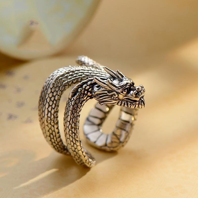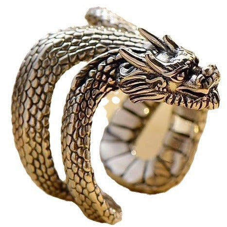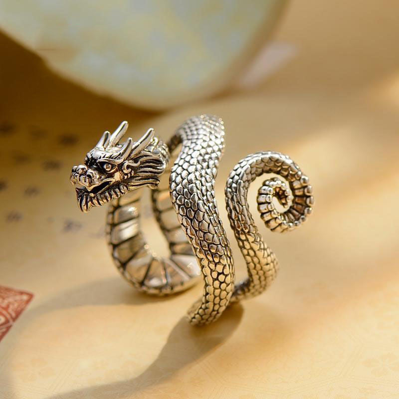 This Coiled Dragon Ring features a meticulously crafted dragon twisting around the finger, symbolizing power, courage, and protection. Inspired by traditional mythological dragons, it embodies both elegance and strength.