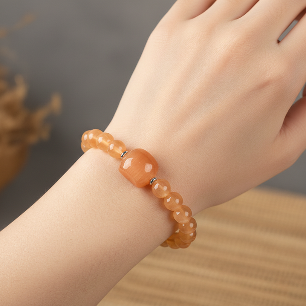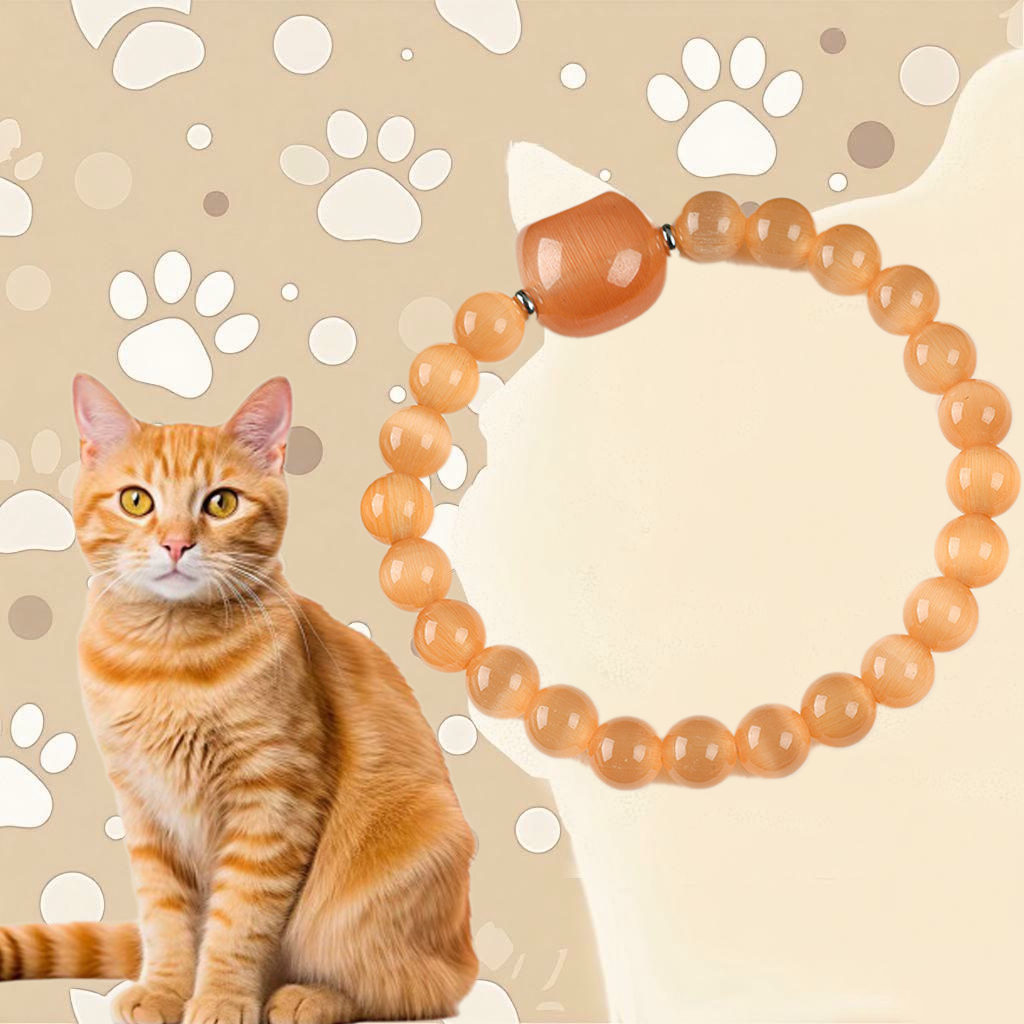 Orange Cat Bracelet – Cat’s Eye Stone Beads with Playful Kitty Charm | Zen Ara Grove