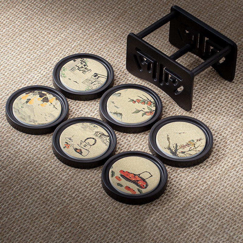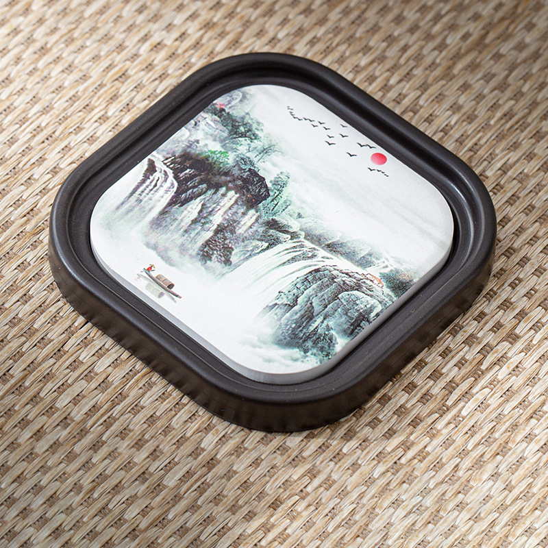 This Zen-inspired absorbent coaster is crafted with an oriental aesthetic, combining elegance with practicality. Its ancient-style motifs evoke harmony and mindfulness, while the high-quality absorbent surface protects your table from moisture. Perfect for tea lovers, meditation practices, or anyone seeking a touch of tranquility in everyday life.