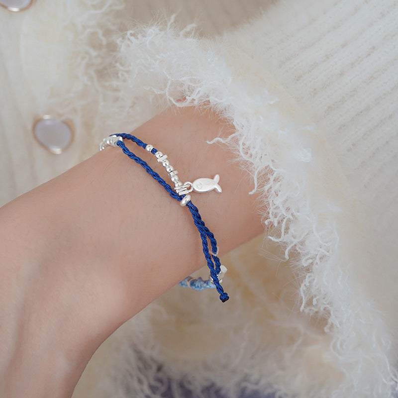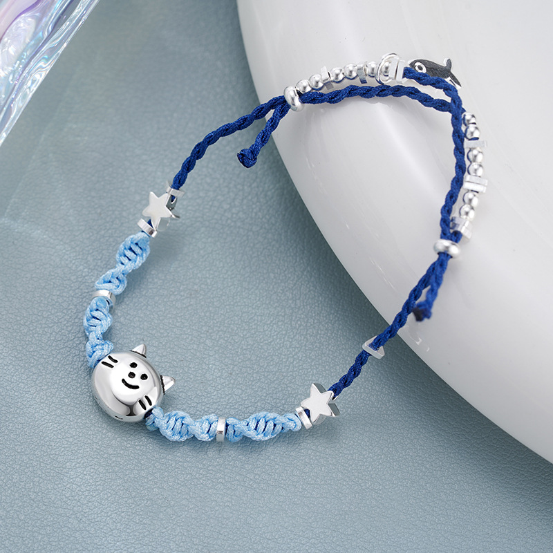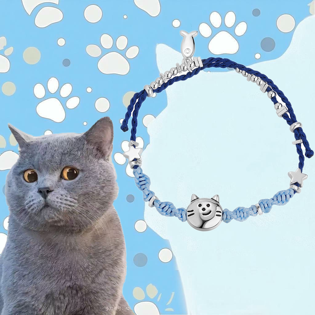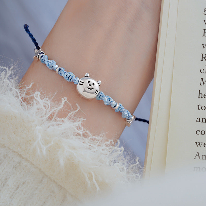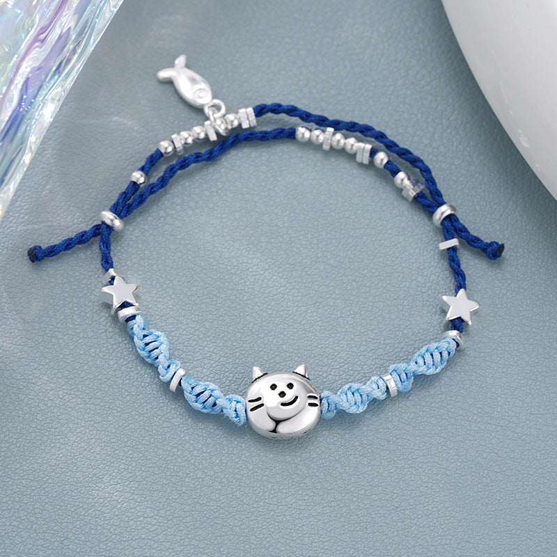 Playful Kitty Head with Fish Motif Woven Bracelet – Adjustable Cord Jewelry | Zen Ara Grove