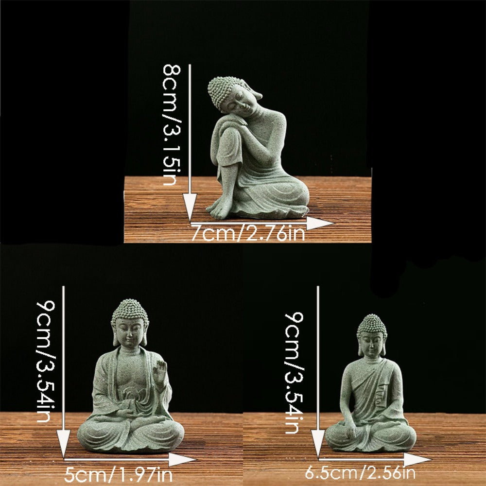Design Inspiration: Inspired by classic Buddha imagery from Chinese and Southeast Asian temples, each statue is carefully shaped by hand to reflect both spiritual dignity and human warmth. The natural texture of sandstone evokes earth’s grounding energy, while the muted green tone enhances its soothing presence.