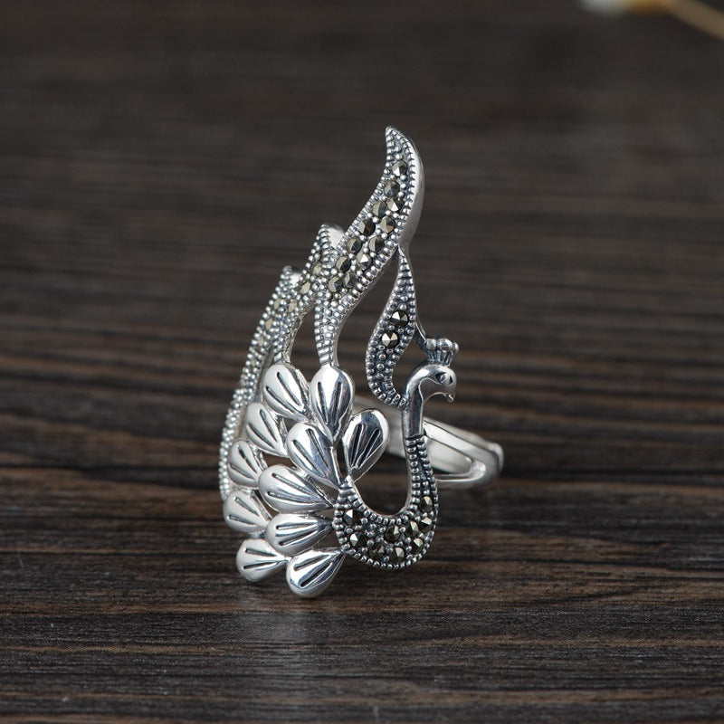 S925 Peacock Silver Ring – Symbol of Beauty & Nobility | Zen Ara Grove