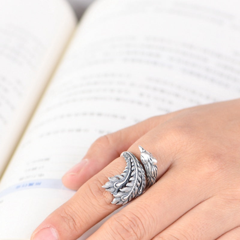 The S925 Phoenix Silver Ring is a handcrafted piece inspired by the legendary Chinese phoenix, a symbol of rebirth, virtue, prosperity, and eternal elegance. Its intricate design captures the flowing wings and fiery spirit of the phoenix, making it both a stylish accessory and a meaningful talisman.