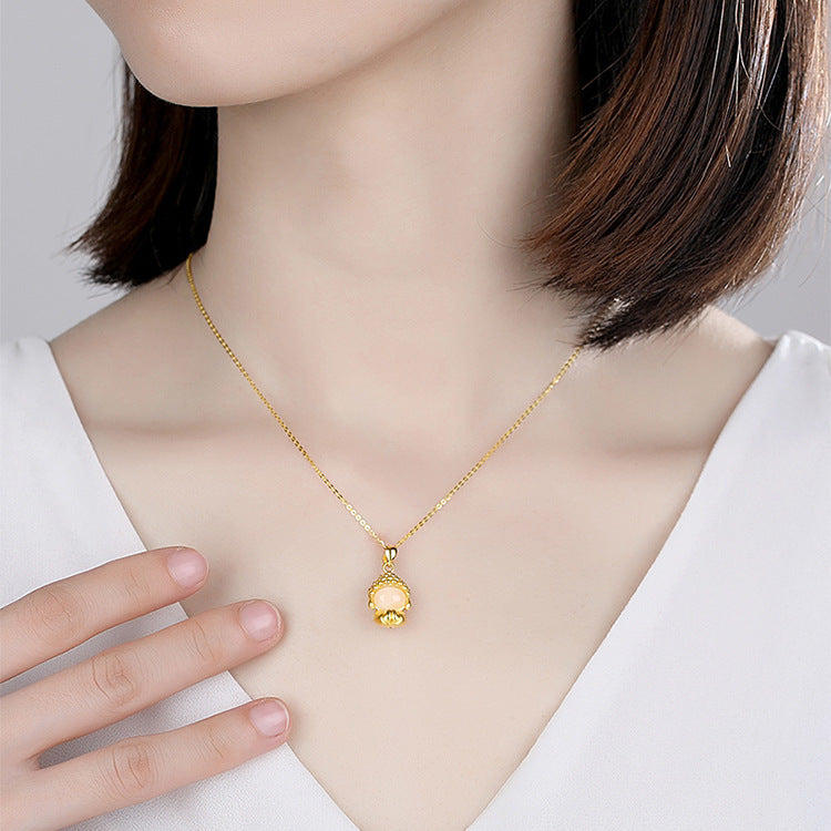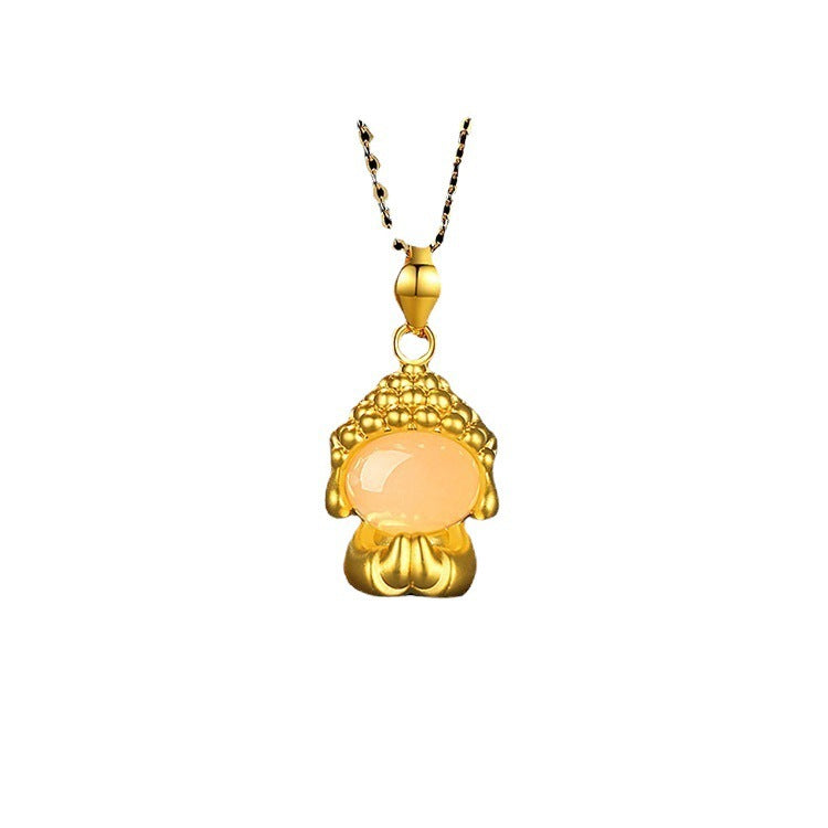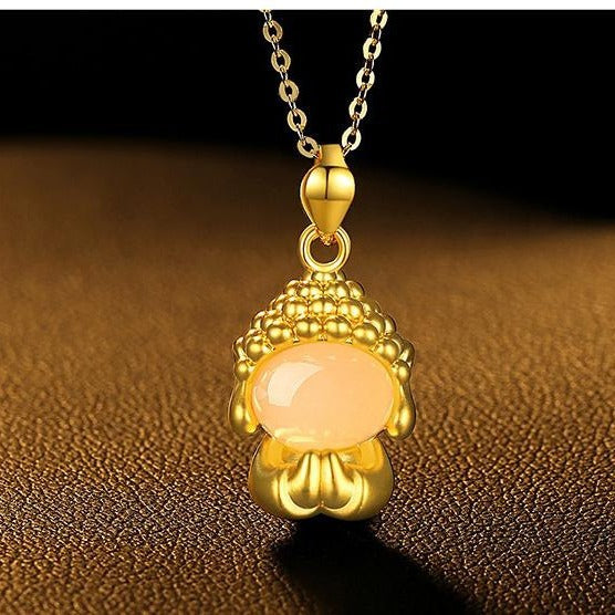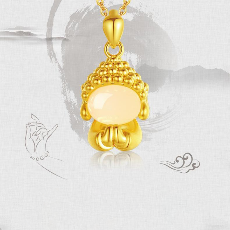 The Nameless Buddha Pendant is a handcrafted figurine of a small Buddha with hands together, symbolizing devotion, mindfulness, and spiritual calm. Its face, made of polished white jade, embodies purity and clarity.