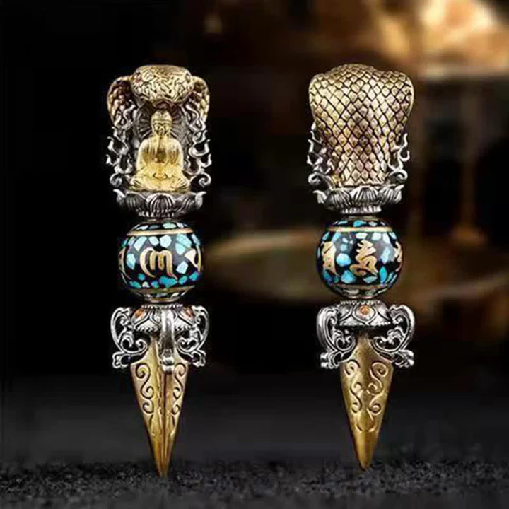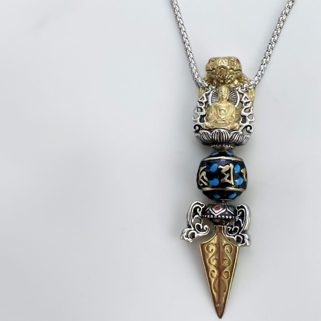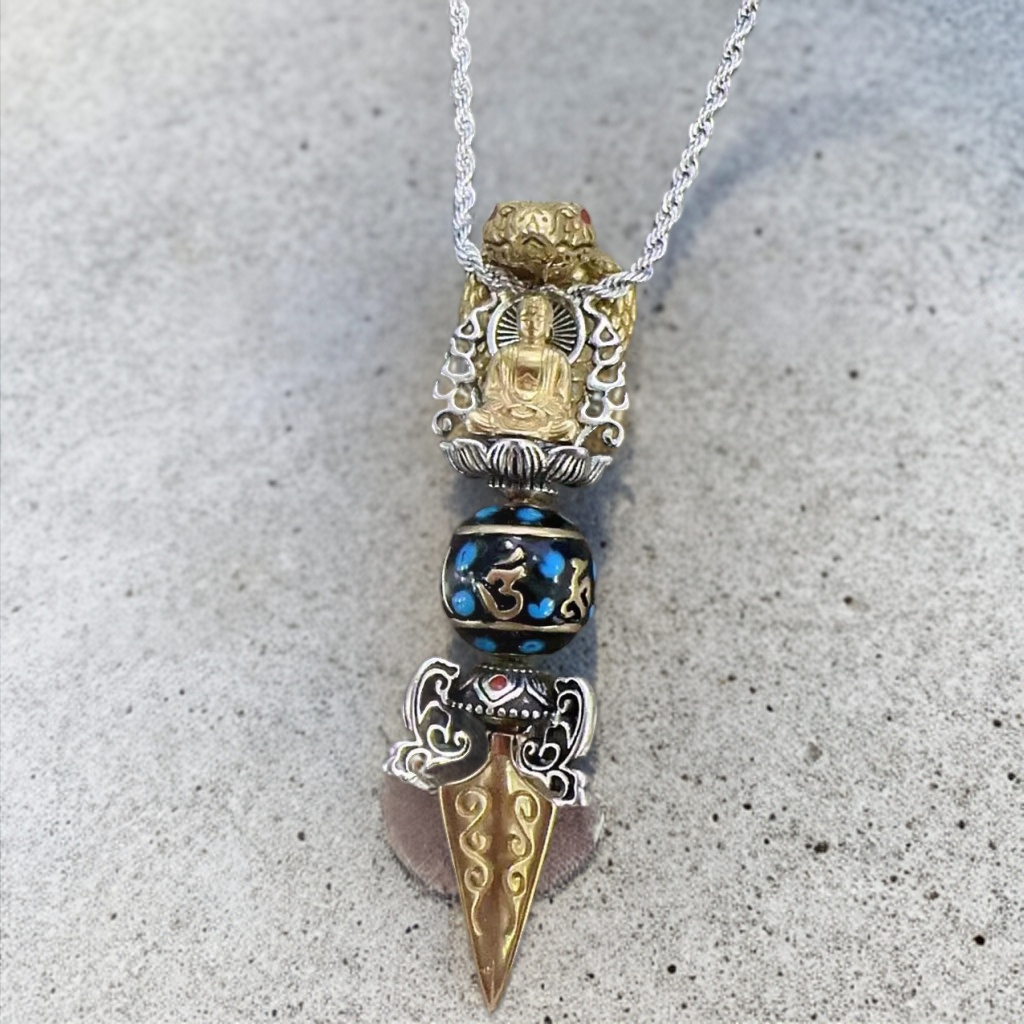The Shakyamuni Vajra (Dorje) is a sacred Buddhist ritual object, symbolizing the indestructible truth of enlightenment. In Buddhist tradition, the vajra represents both the power of a thunderbolt and the stability of a diamond, combining immense strength with unshakable clarity.