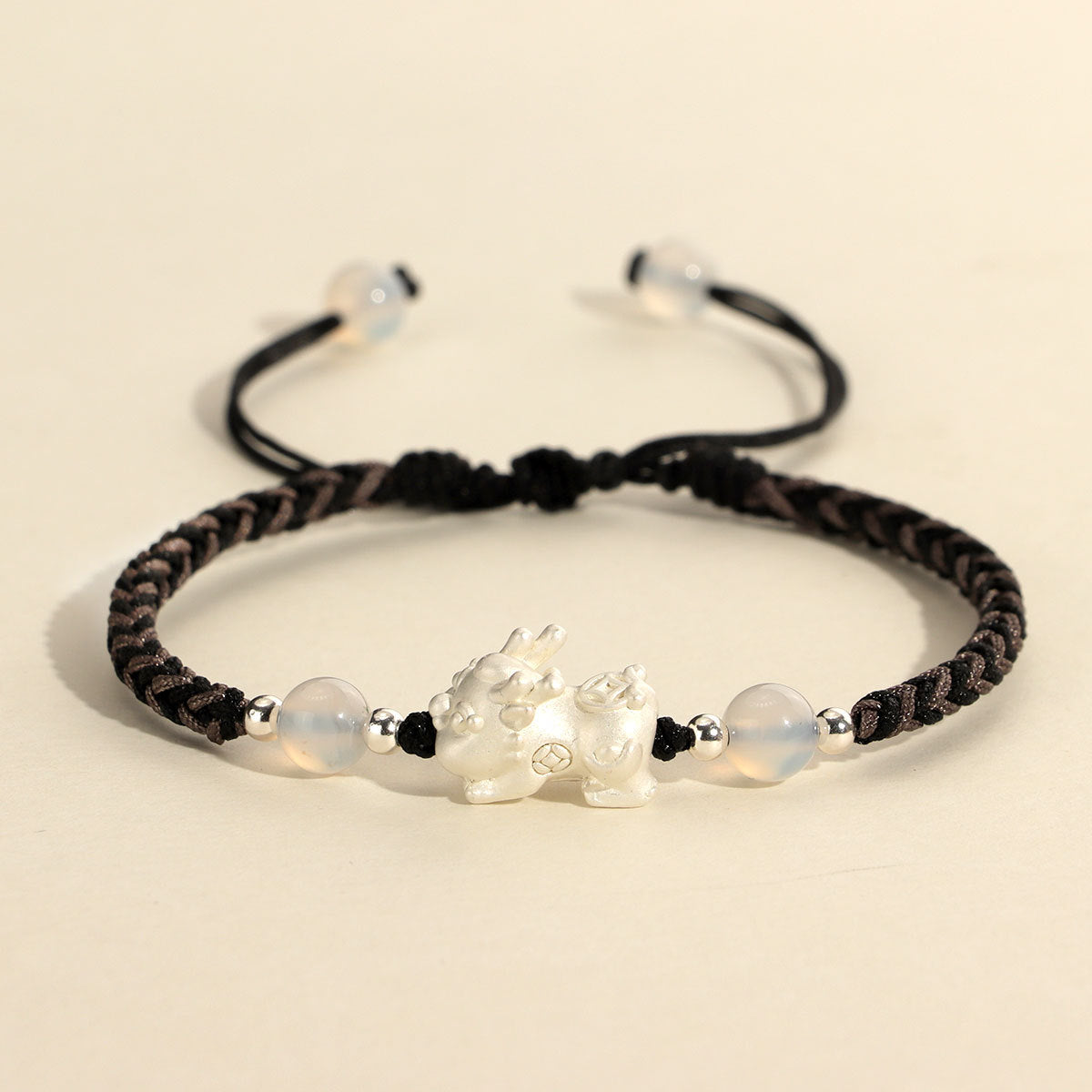 This 999 Silver Pixiu Red & White Braided Bracelet combines the mystical power of Pixiu with the elegance of handcrafted braiding.