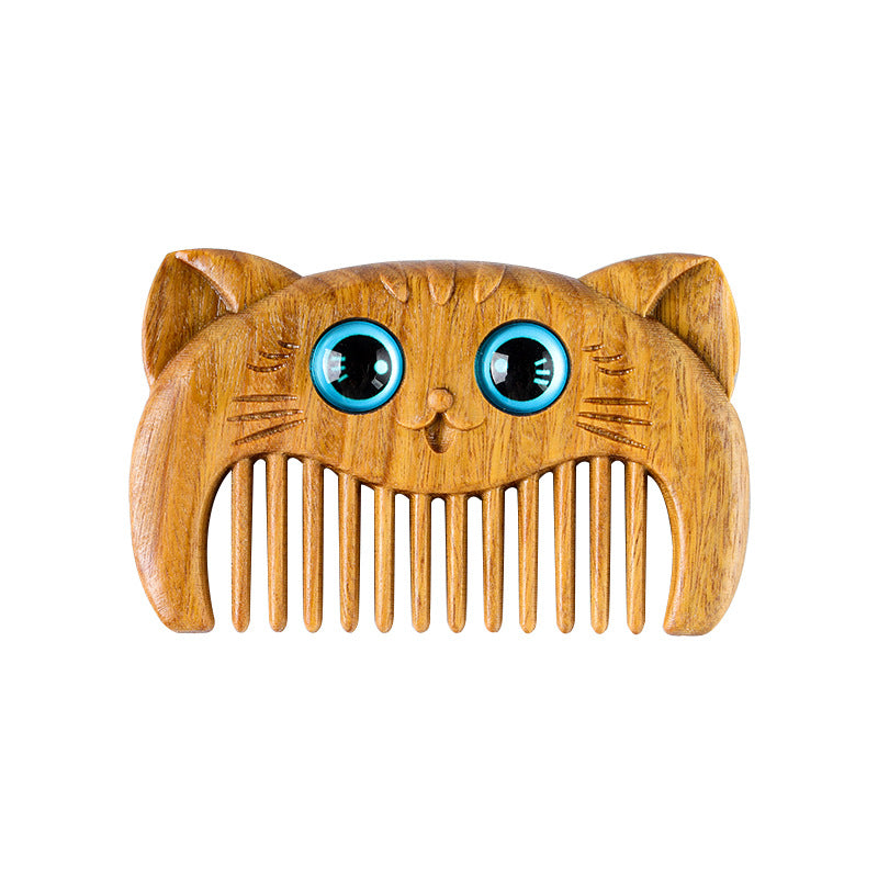 Simple Cat Pattern Green Sandalwood Cure Portable Comb | Zen Ara Grove