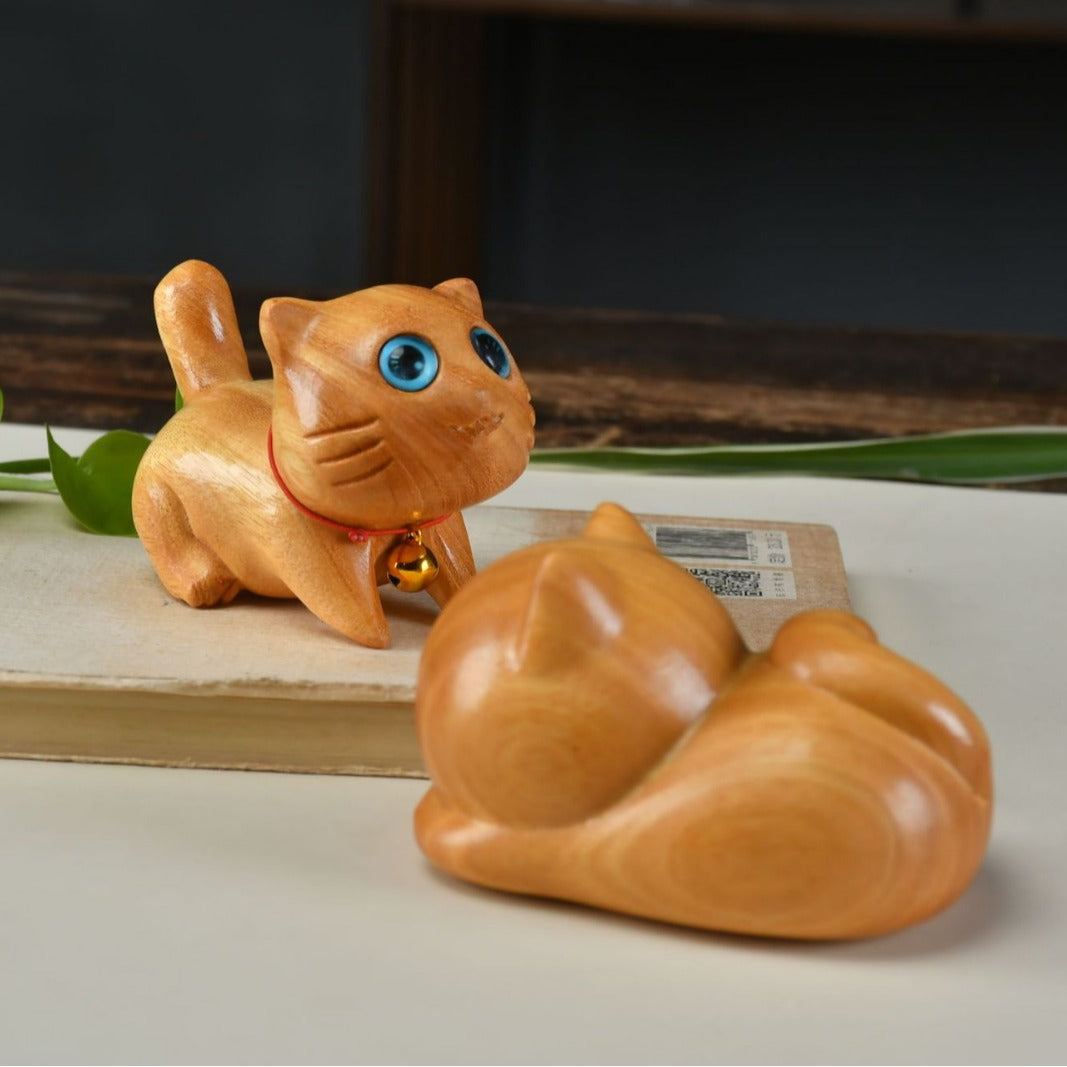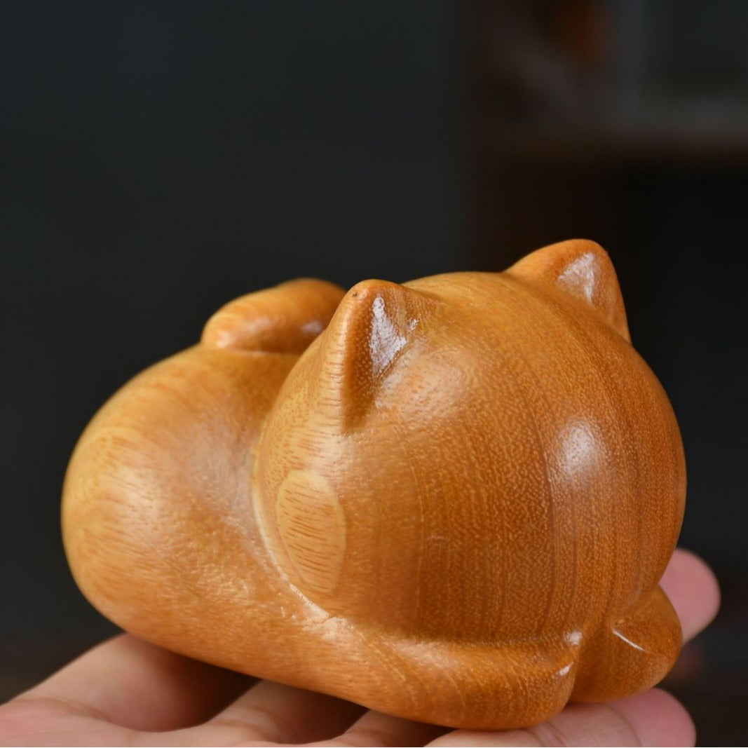 Small Cute Confident Sleeping Cat Sandalwood Healing Home Decoration | Zen Ara Grove