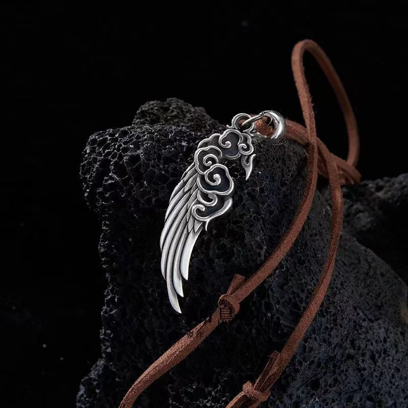 The Sterling Silver Auspicious Clouds Wing Pendant embodies elegance and spiritual significance. Crafted from high-quality sterling silver, it features the flowing design of auspicious clouds and wings, symbols of luck, freedom, and inner peace.