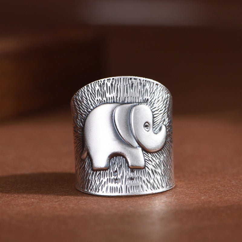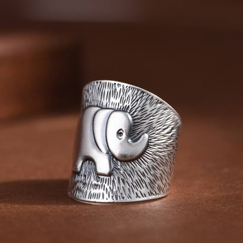 Sterling Silver Elephant Ring – Wide Hammered Vintage Style | Zen Ara Grove
