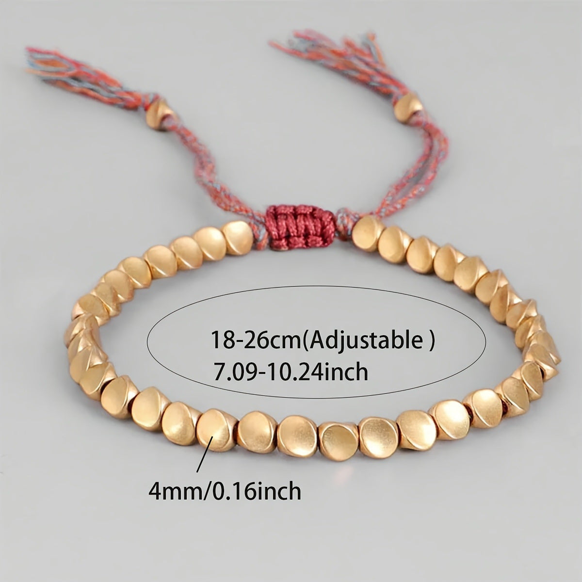 Handcrafted with irregular brass beads and carefully woven threads, this bracelet merges minimalist elegance with layers of contemplative symbolism. Each brass bead carries a soft metallic luster and a distinctive form, creating a grounding tactile presence in your hand.