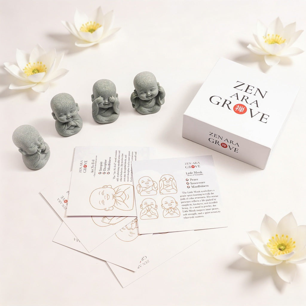 Perfect as a meaning guide, gift card, or collectible piece, this set invites reflection and deepens the experience of The Four Little Zen Monks.