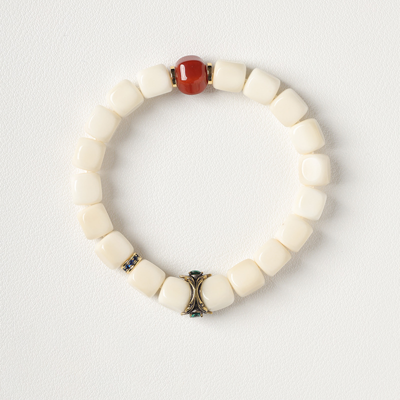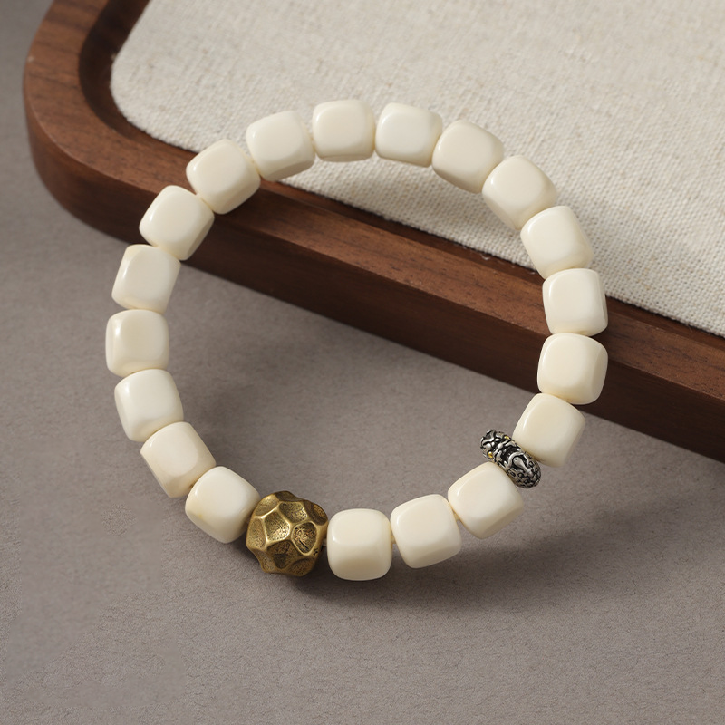 White Bodhi seeds in their raw, square-cut form are revered for their natural purity and meditative symbolism. Each bead bears a subtle hammered texture, echoing the rhythm of breath in quiet practice. At the heart of the strand lies a personal Buddha guardian—a sacred presence attuned to your birth sign, believed to protect and inspire on the spiritual path.
