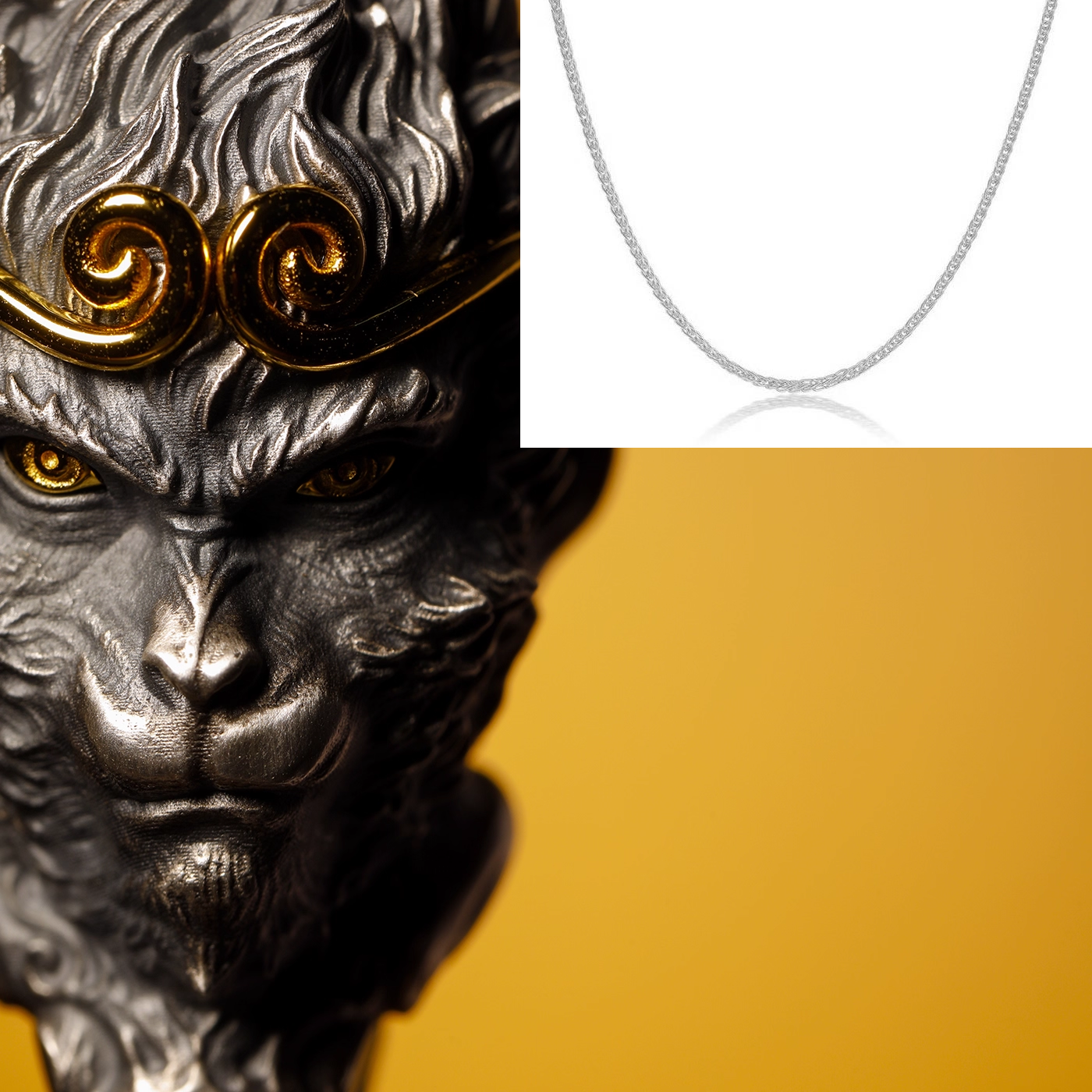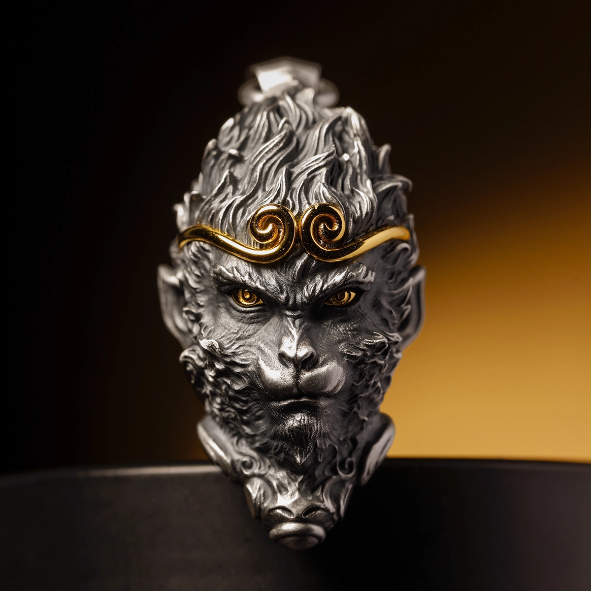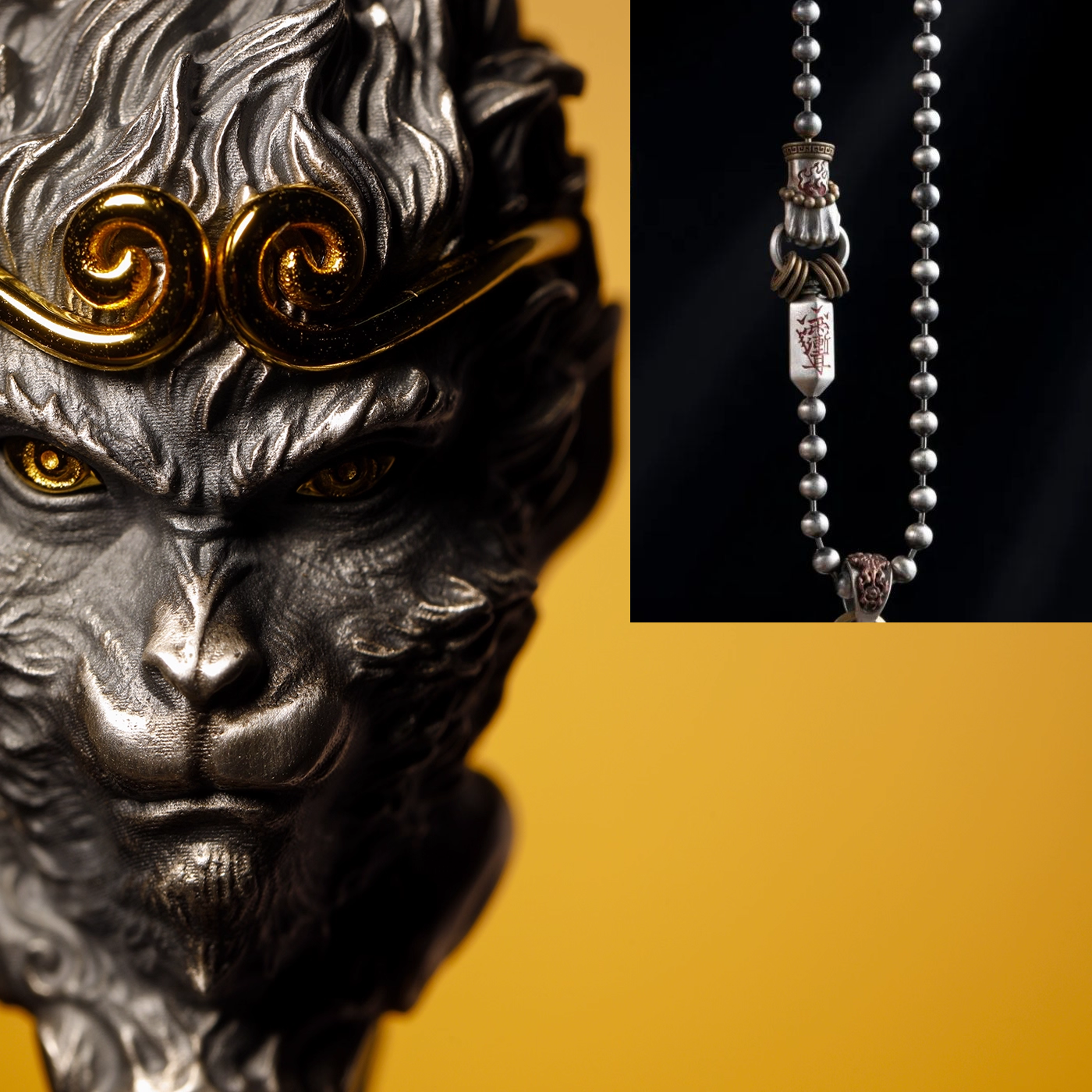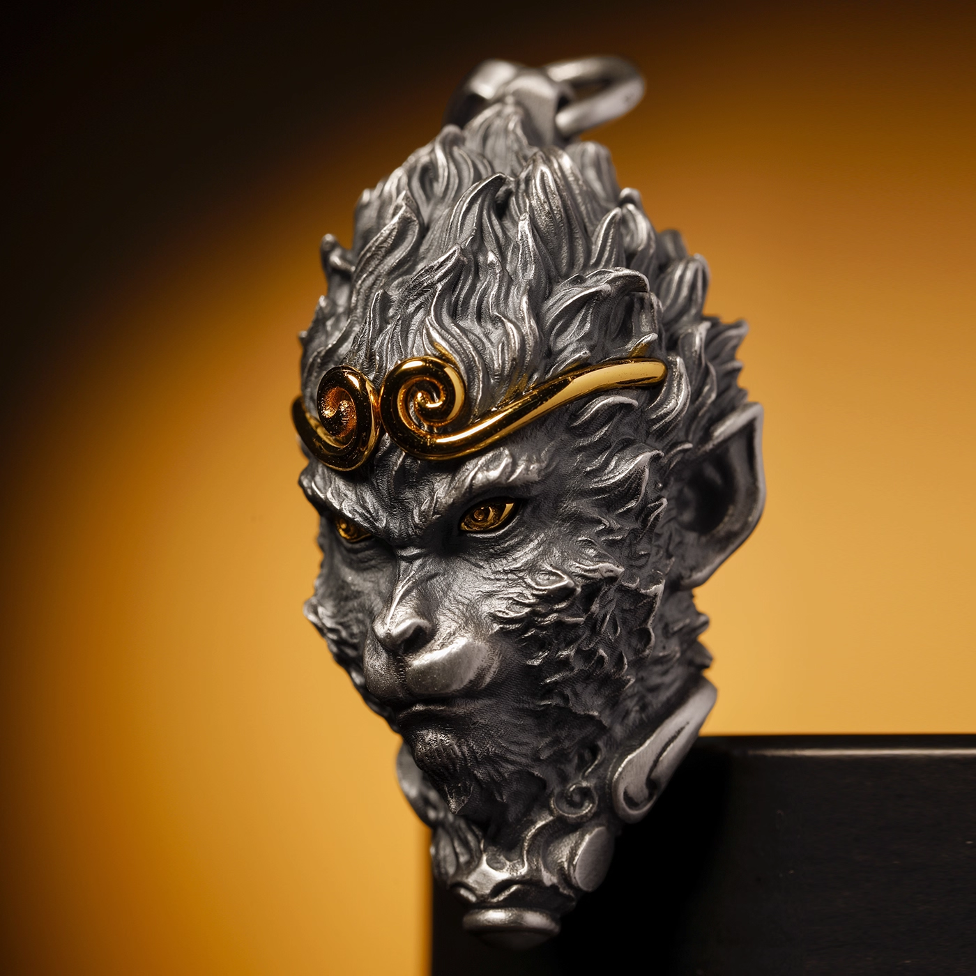 The Wukong Pendant features the legendary Monkey King, Sun Wukong, crowned with his iconic golden headband (Jingu Quan)—a symbol of both restraint and wisdom. From the classic tale Journey to the West, Wukong represents freedom, wit, and the unbreakable spirit that defies all obstacles.