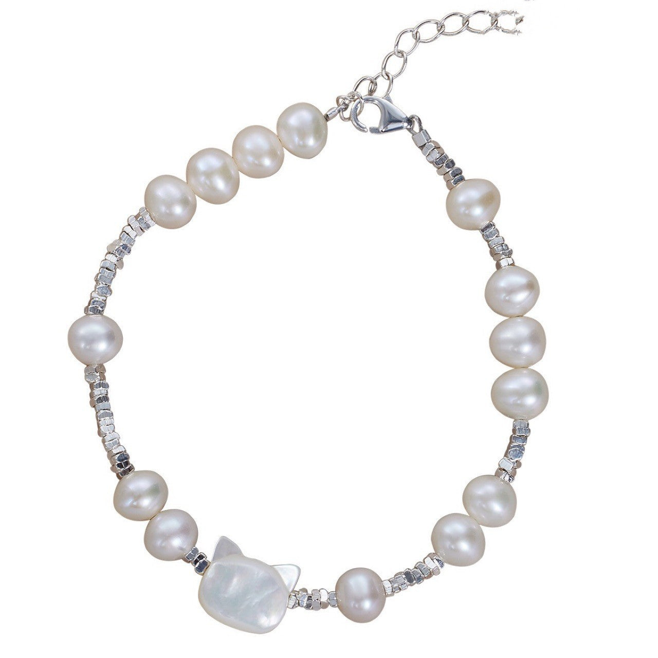 • Adorned with a cute Cat charm and white mother-of-pearl beads