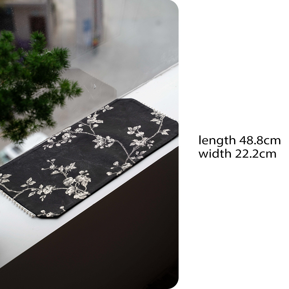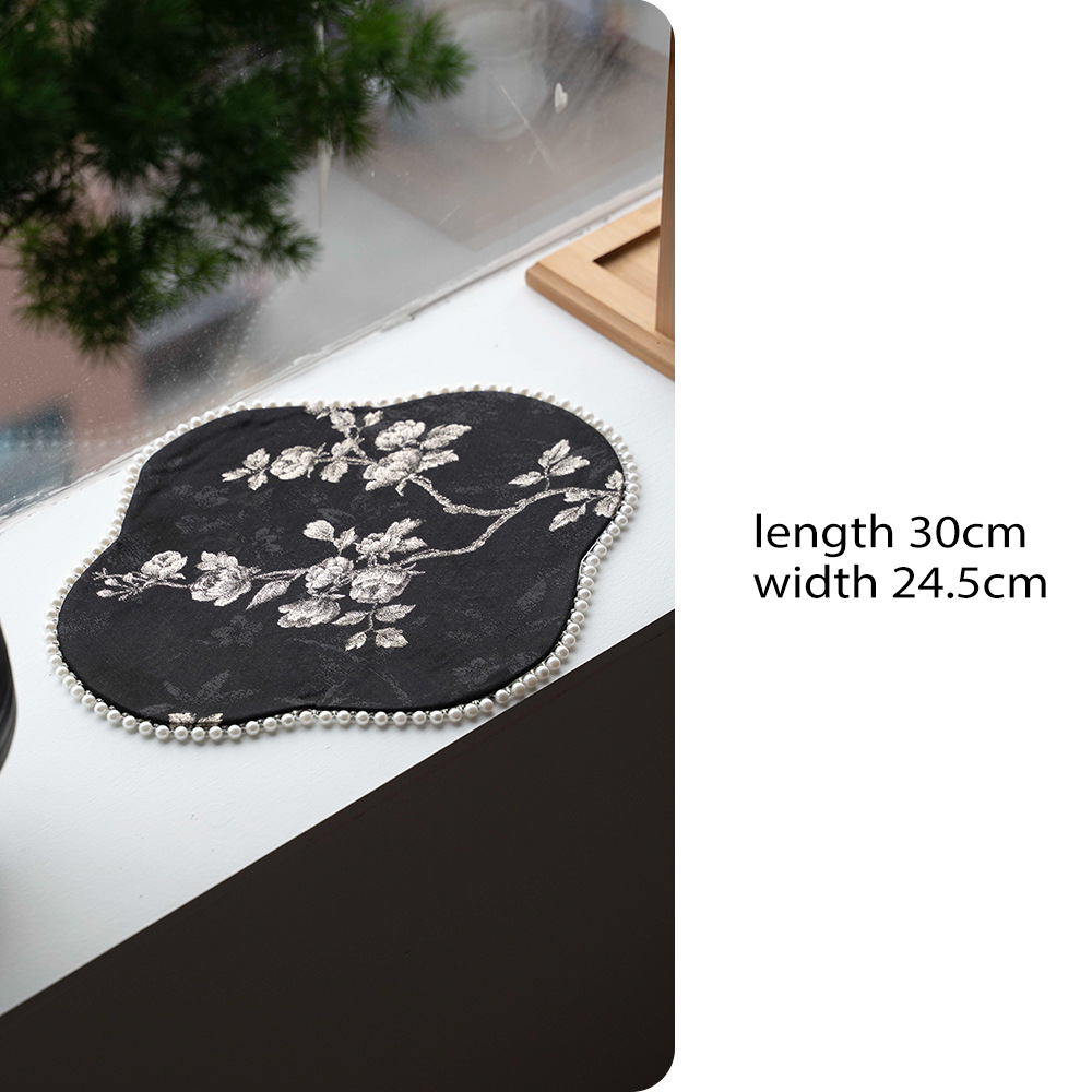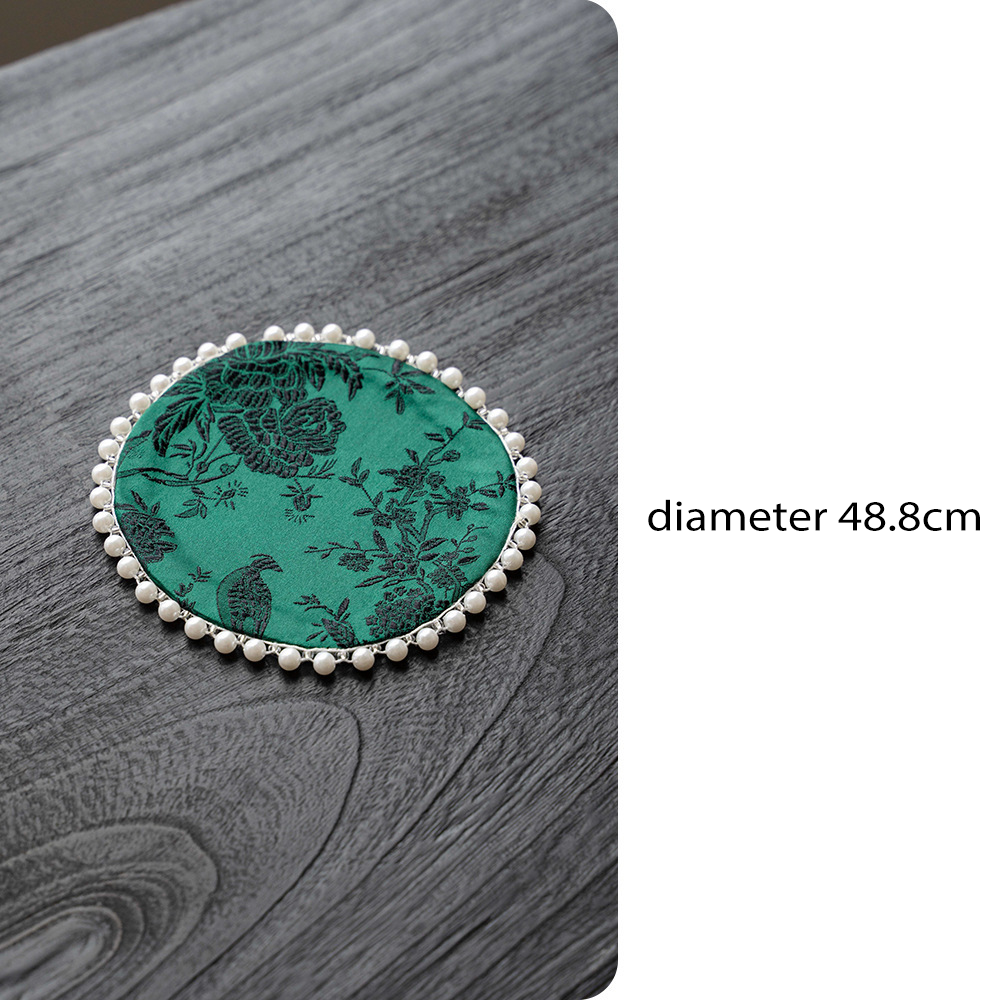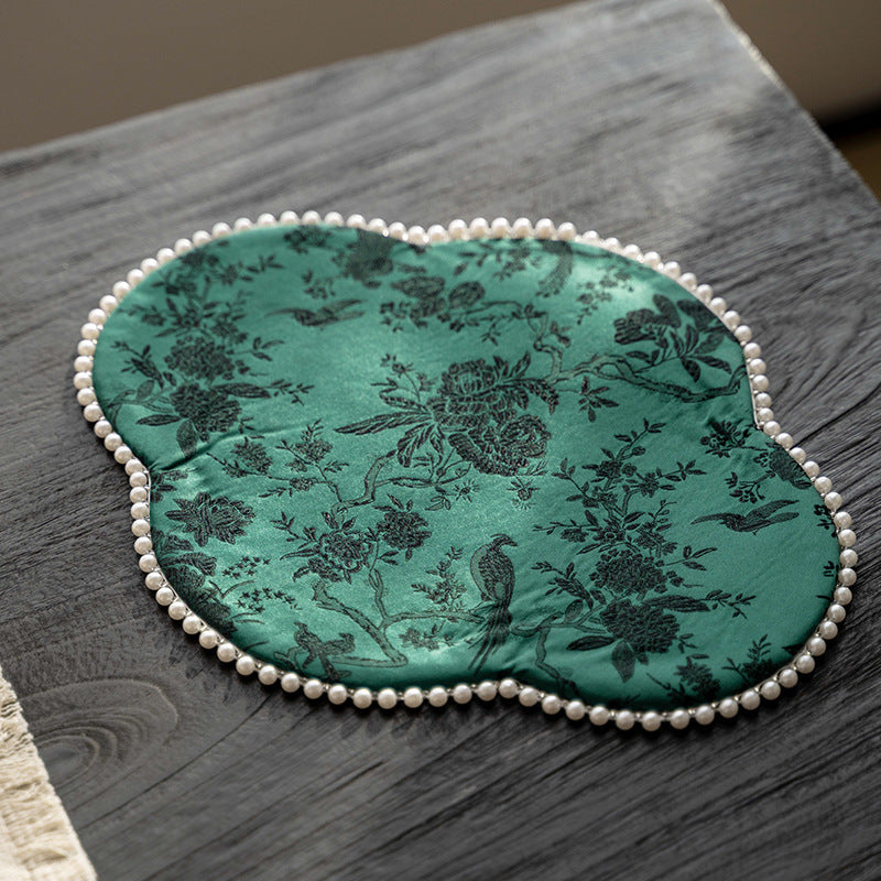 Crafted from thick jade-green brocade with irregular, cloud-like patterns, this tea ceremony mat embodies wabi-sabi aesthetics. The hand-stitched white tassels fringe its edges, creating soft movement as steam rises from your teapot. Sized to hold essential tea tools (shown with white pot), its textured surface anchors your ritual in tactile serenity.